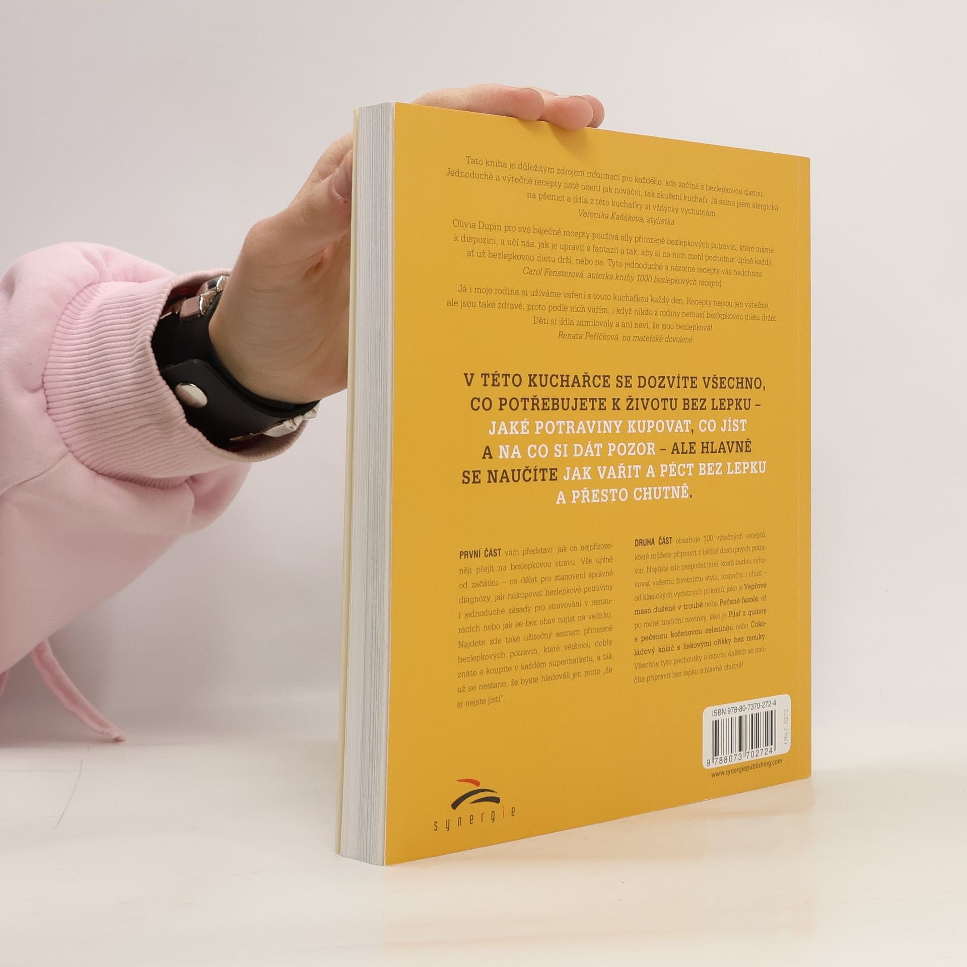 V této kuchařce se dozvíte všechno, co potřebujete k životu bez lepku - jaké potraviny kupovat, co jíst a na co si dát pozor, ale hlavně se naučíte jak vařit a péct bez lepku a přesto chutně. Autorka používá pro své recepty silu přirozeně bezlepkových potravin, které máme k dispozici, a učí nás, jak je upravit s fantazií a tak, aby si na nich mohl pochutnat úplně každý, ať už bezlepkovou dietu drží nebo ne. V první části se dozvíte více o bezlepkové dietě, jak stanovit diagnózu, jak nakupovat bezlepkové potraviny i jednoduché zásady pro stravování v restauracích. Také zde najdete užitečný seznam přirozeně bezlepkových potravin, které většinou znáte a které se dají koupit v každém větším supermarketu. Druhá část obsahuje 100 výtečných receptů na jednoduchá a přesto nesmírně chutná jídla. Takže neváhejta a zkuste vařit bez lepku a chutně!