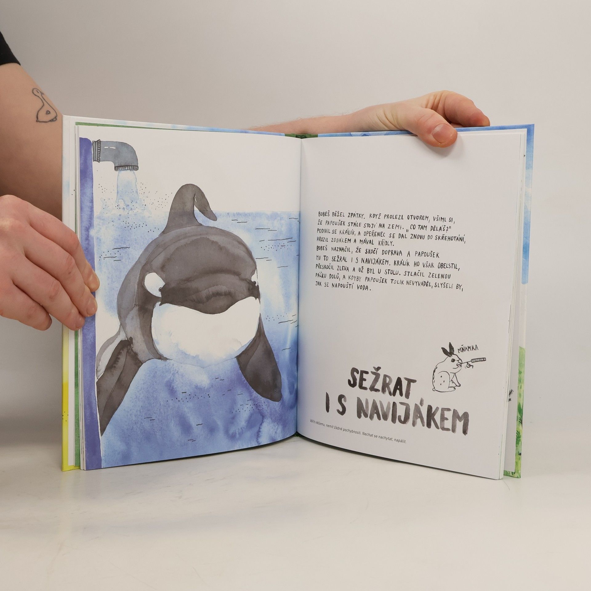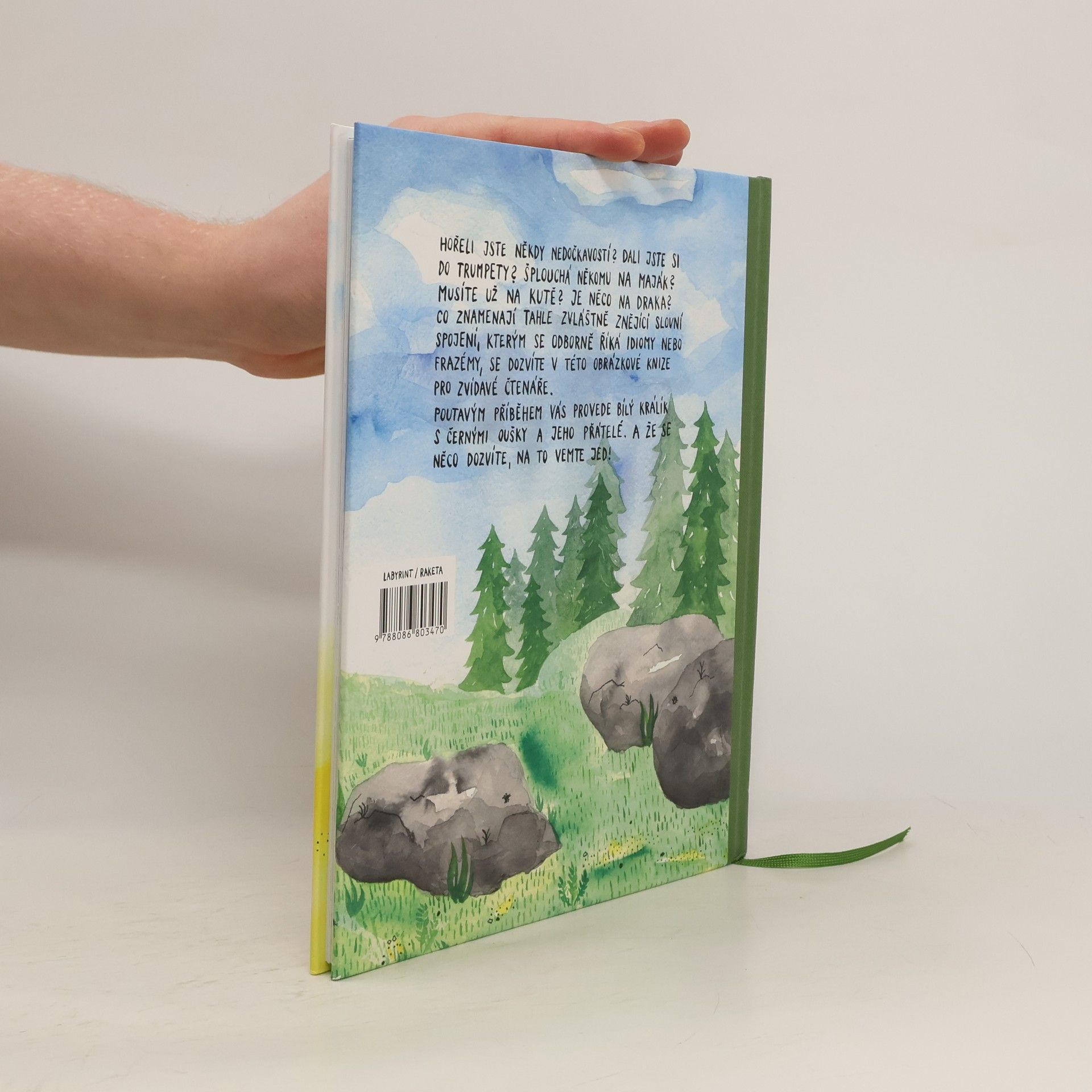 Hořeli jste někdy nedočkavostí? Dali jste si do trumpety? Šplouchá někomu na maják? Musíte už na kutě? Je něco na draka? Co znamenají tahle zvláštně znějící slovní spojení, kterým se odborně říká idiomy nebo frazémy, se dozvíte v této obrázkové knize pro zvídavé čtenáře. Poutavým příběhem vás provede bílý králík s černými oušky a jeho přátelé. A že se něco dozvíte, na to vemte jed!