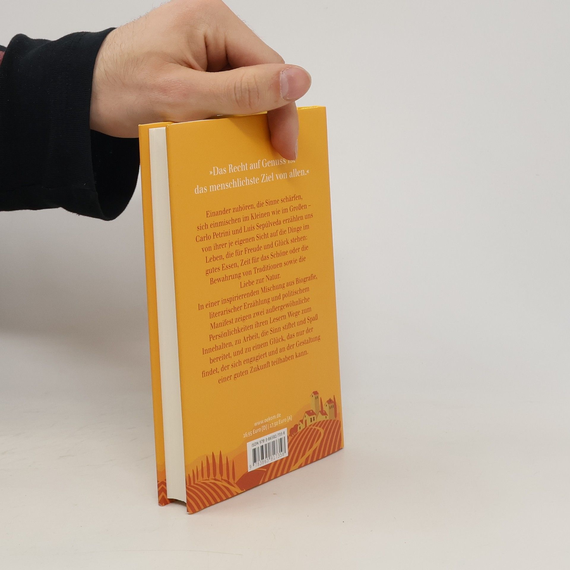 Einander zuhören, die Sinne schärfen, sich einmischen im Kleinen wie im Großen – Carlo Petrini und Luis Sepúlveda erzählen uns von ihrer je eigenen Sicht auf die Dinge im Leben, die für Freude und Glück stehen: gutes Essen, Zeit für das Schöne oder die Bewahrung von Traditionen sowie die Liebe zur Natur. In einer inspirierenden Mischung aus Biografie, literarischer Erzählung und politischem Manifest zeigen zwei außergewöhnliche Persönlichkeiten ihren Lesern Wege zum Innehalten, zu Arbeit, die Sinn stiftet und Spaß bereitet, und zu einem Glück, das nur der findet, der sich engagiert und an der Gestaltung einer guten Zukunft teilhaben kann.