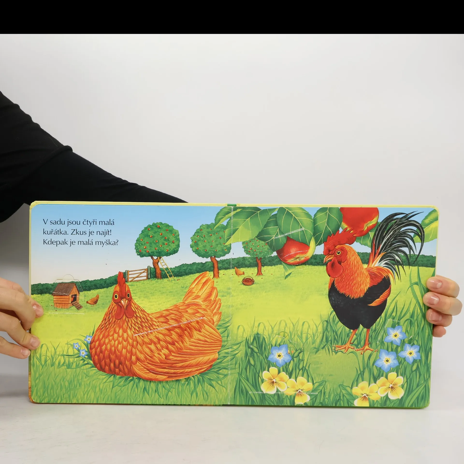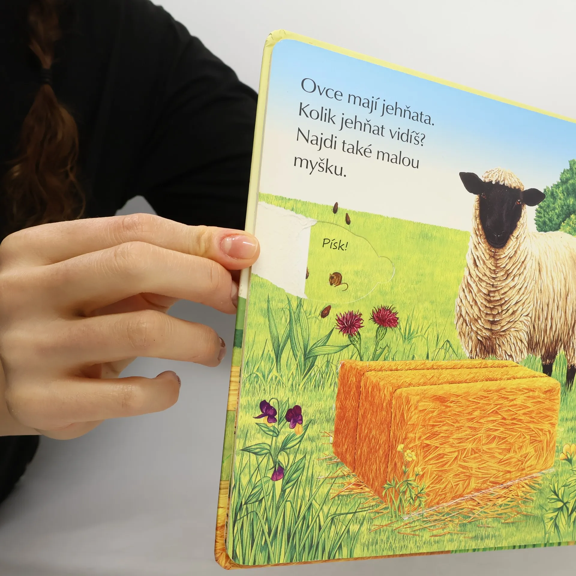 Kdo je dnes na louce? Co je ve stodole? Otevři okénka v leporelu a podívej se.