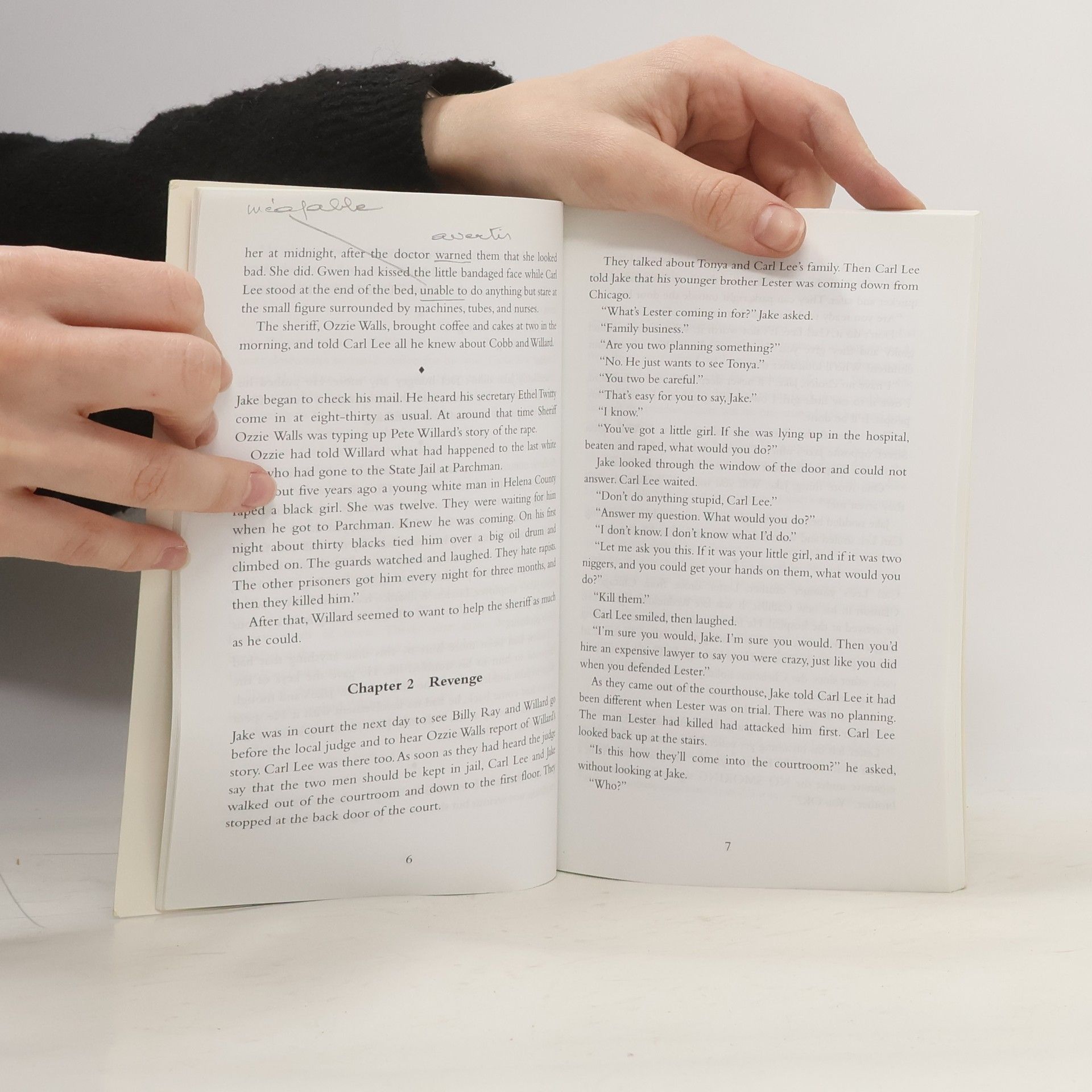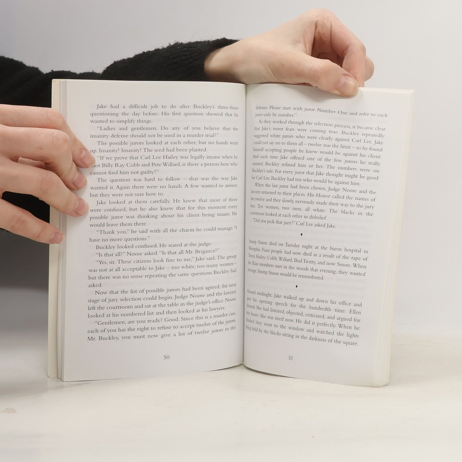 Contemporary / American English Ten-year-old Tonya Hailey is attacked and raped by two local men. Carl Lee, Tonya's father, shoots them. Now only his lawyer and friend, Jake Brigance, stands between him and the electric chair. Is there a legal defense for Carl Lee's actions?