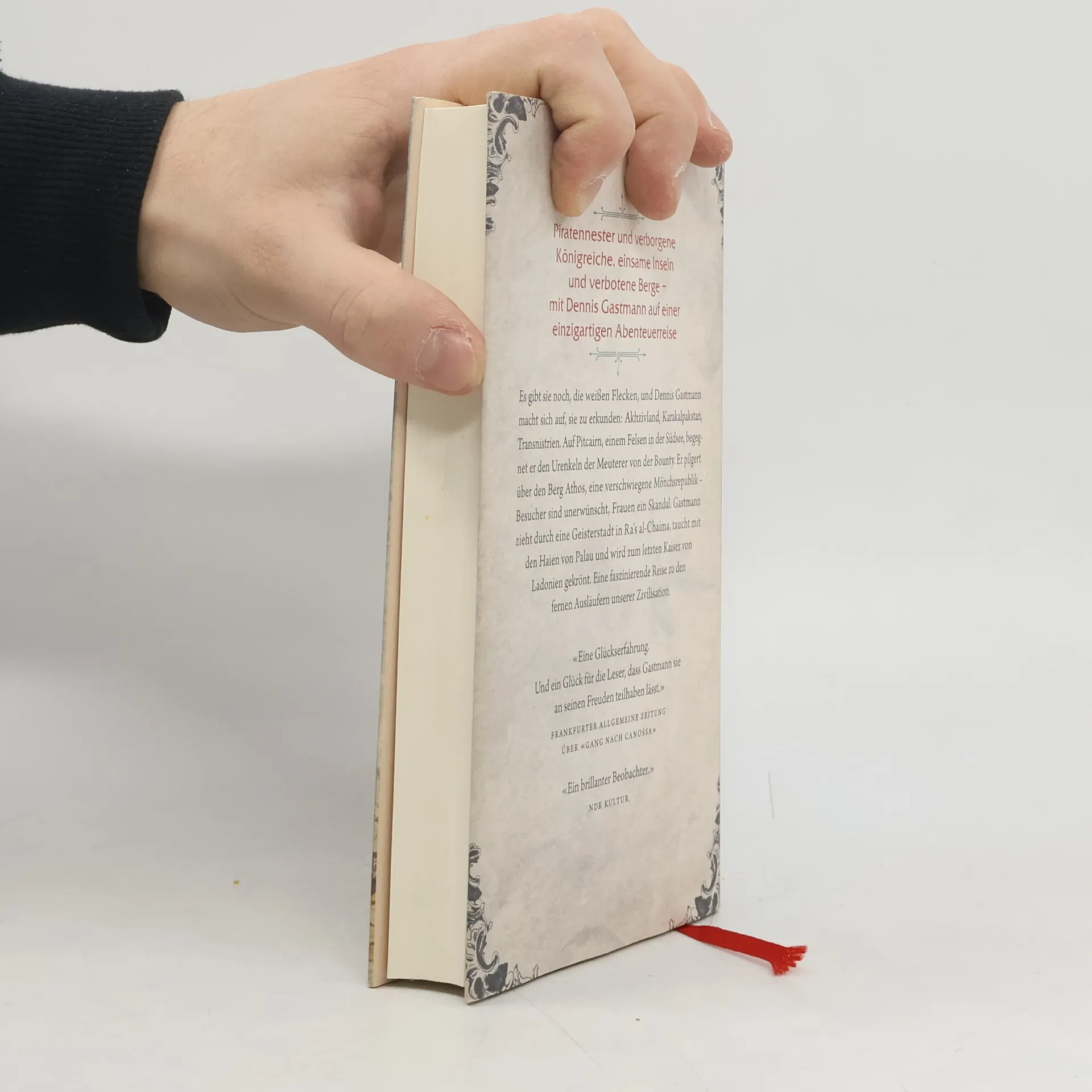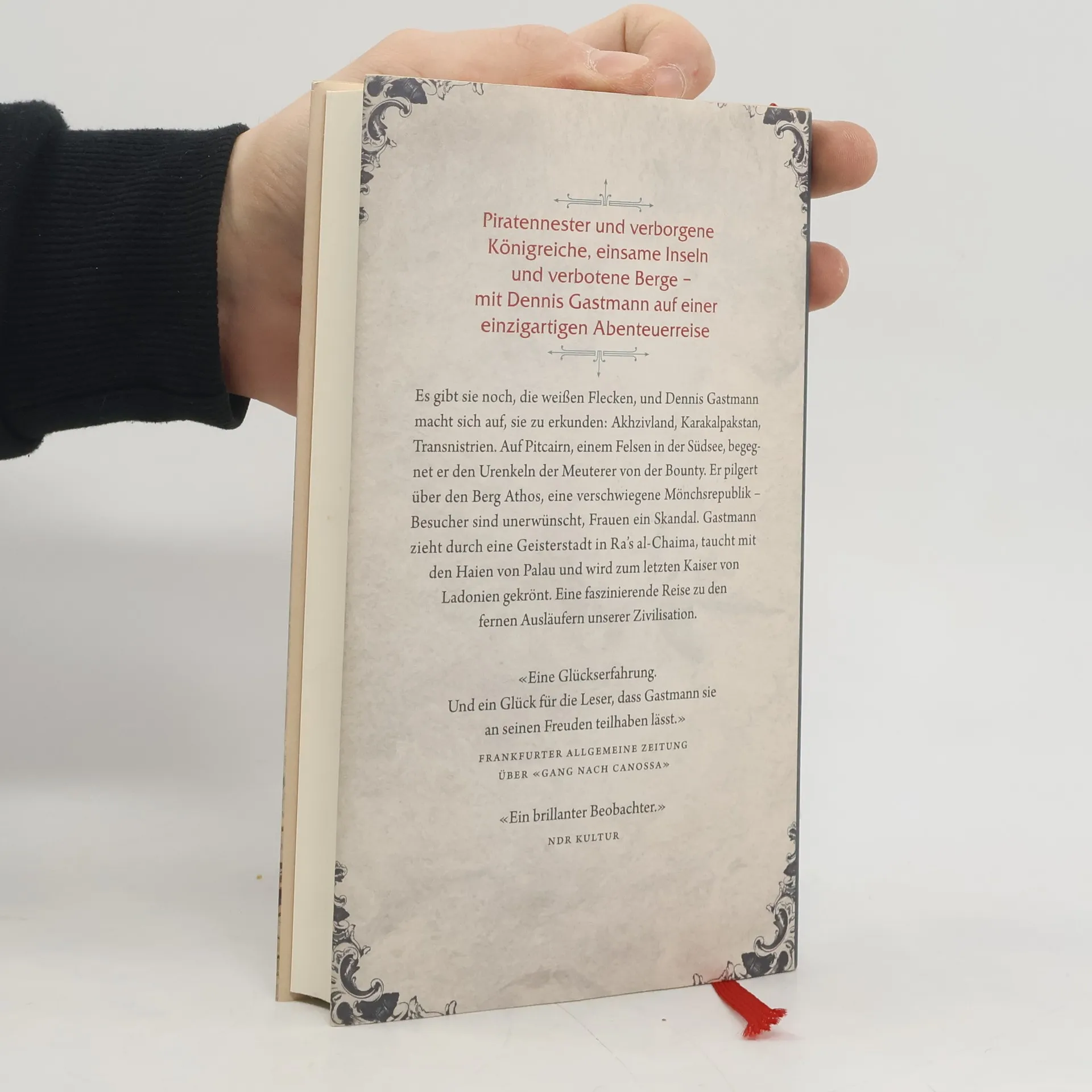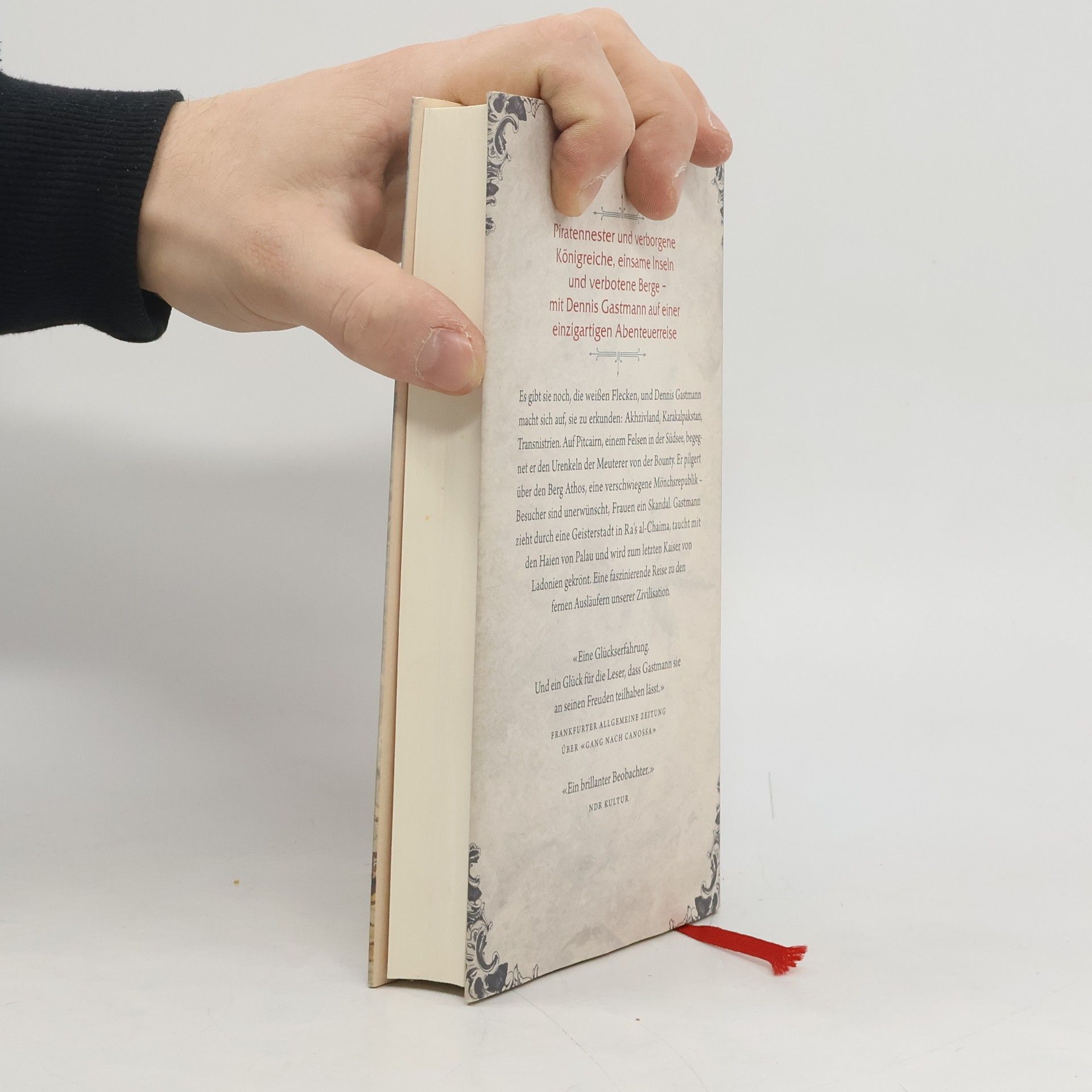 Nach Marco Polo, Kolumbus und Millionen Touristen scheint jeder Winkel der Welt entdeckt ̶ doch das ist ein Irrtum! Dennis Gastmann erkundet Orte, die fern, unbekannt oder vergessen und in jedem Fall magisch sind: Akhzivland, Karakalpakstan, R’as al-Chaima. Auf dem Südsee-Felsen Pitcairn begegnet er den Nachfahren der Meuterer von der Bounty, in Palau taucht er mit Haien. Er wandert durch die tausendjährige Mönchsrepublik auf dem Berg Athos, in der Besucher unerwünscht sind, die bärtigen Heiligen wollen unter sich bleiben. Gastmann sucht nach Liebe in Transnistrien, einem Mafiastaat, der Besuchern empfiehlt: «Fahren Sie lieber nach Spanien!» Er begegnet Geistern und Dämonen, gerät in einen Taifun und wird zum letzten Kaiser von Ladonien gekrönt… Mit Charme und Hintersinn begibt sich Dennis Gastmann zu den Ausläufern unserer Zivilisation. Wie sieht es dort aus? Wie lebt man dort? Und was sagt das über den Rest unserer durchorganisierten Welt?