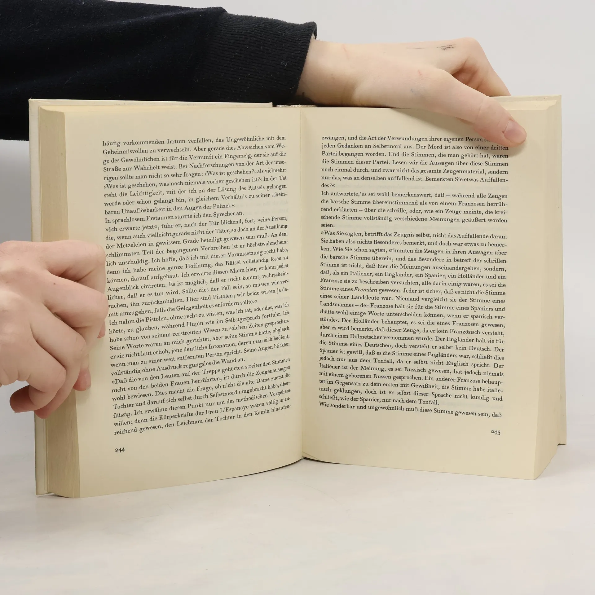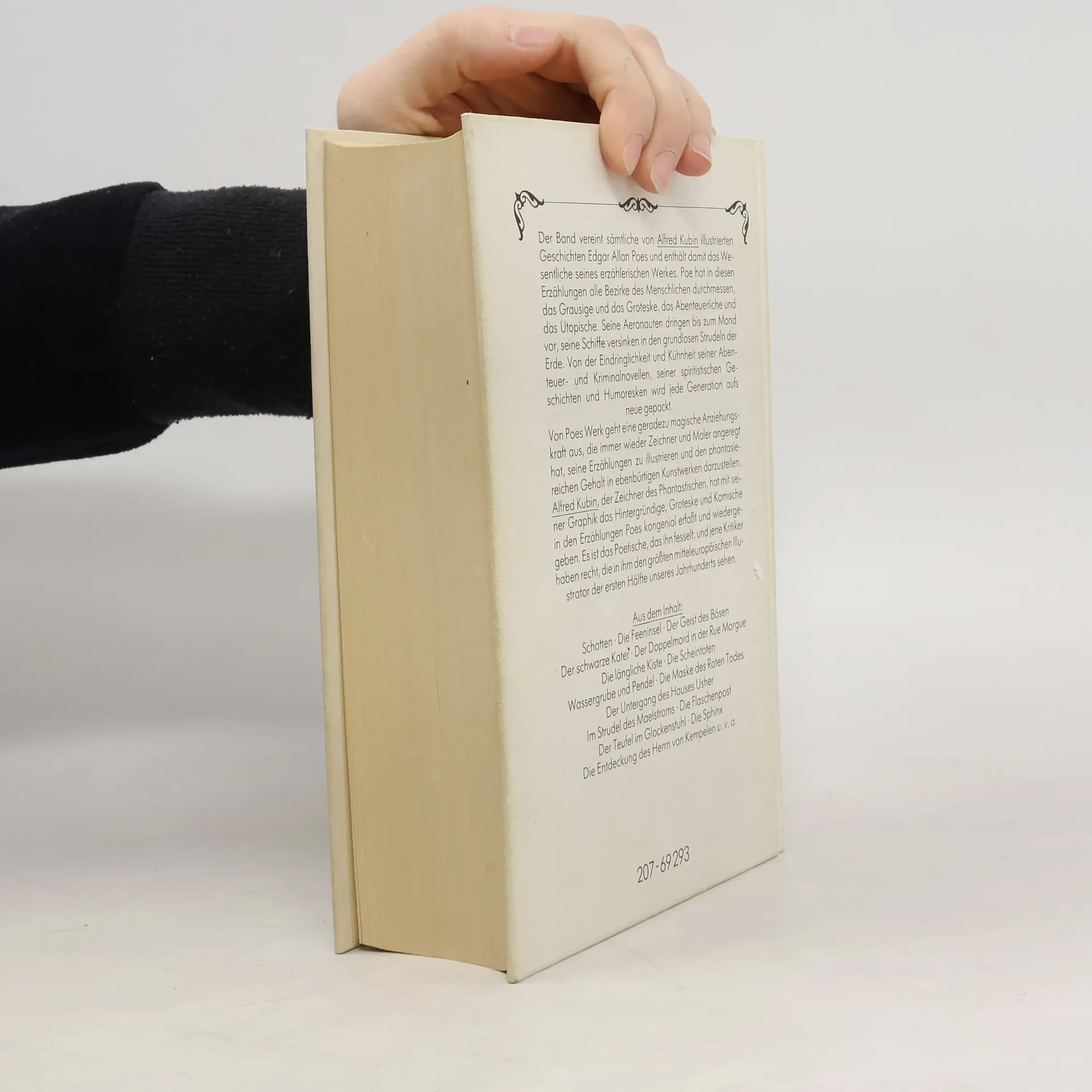 Aus dem Amerikanischen von A.v. Bosse, J.v.d. Goltz, M. Bretschneider, H. Kauders und W. Widmer. Mit Nachwort, Anmerkungen und Zeittafel von F.T. Zumbach. Inhalt: Das Manuskript in der Flasche Berenice Morella Das Stelldichein Ligeia Der Untergang des Hauses Usher William Wilson Der Mann der Menge Der mord in der Rue Morgue Der Malstrom Das ovale Porträt Die Maske des roten Todes Eleonora Das Geheimnis der Marie Roget Das verräterische Herz Der Goldkäfer Der schwarze Kater Die Grube und das Pendel Im Felsengebirge Die Augengläser Vorzeitiges Begräbnis Die längliche Kiste Der wahre Sachverhalt im Falle Valdemar Der entwendete Brief Das Faß Amontillado Der Froschhüpfer Seltsame Erlebnisse des Arthur Gordon Pym aus Nantucket Format 11,5 x 19 cm. Gebunden mit Schutzumschlag.