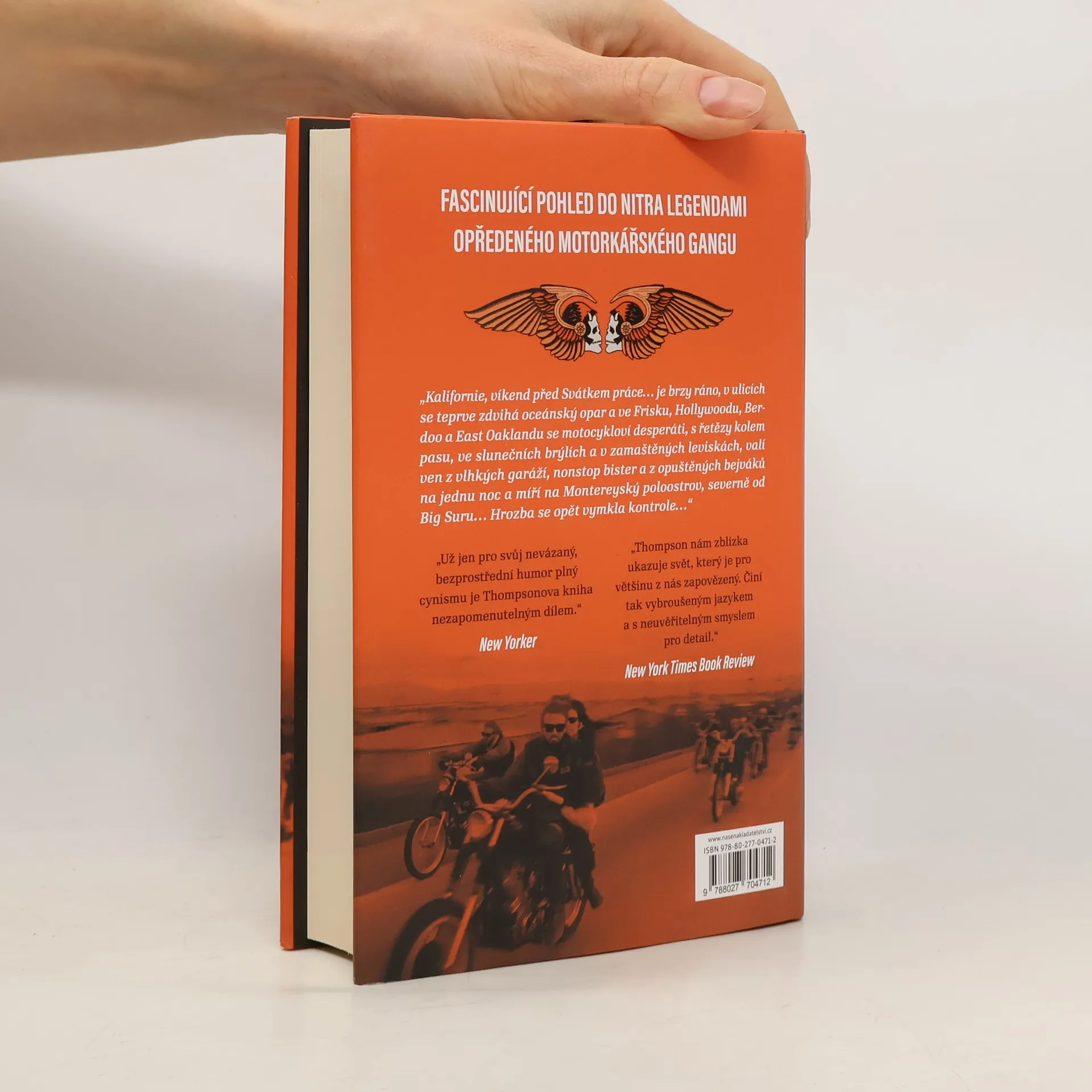 Na počátku šedesátých let byl Hunter S. Thompson, tou dobou novinář v San Franciscu, fascinován motorkářským klubem Hell's Angels. Jeho článek o těchto pánech silnic vyvolává senzaci, takže se autor rozhodl pustit do delší verze: rok stráví ježděním a psaním vedle nich. Dobrodružství však končí divoce: protože se odmítne podělit o své honoráře, andělé opustí literáta na silnici, polomrtvého a s rozbitou hlavou... Kniha vás stáhne do podsvětí klubu, jehož jméno má mezi všemi motorkářskými gangy Kalifornie ten nejhorší zvuk. Thompson popisuje ve výmluvných, působivých detailech jejich stroje, vlastní zákony, slang, původ a každodenní existenci...
