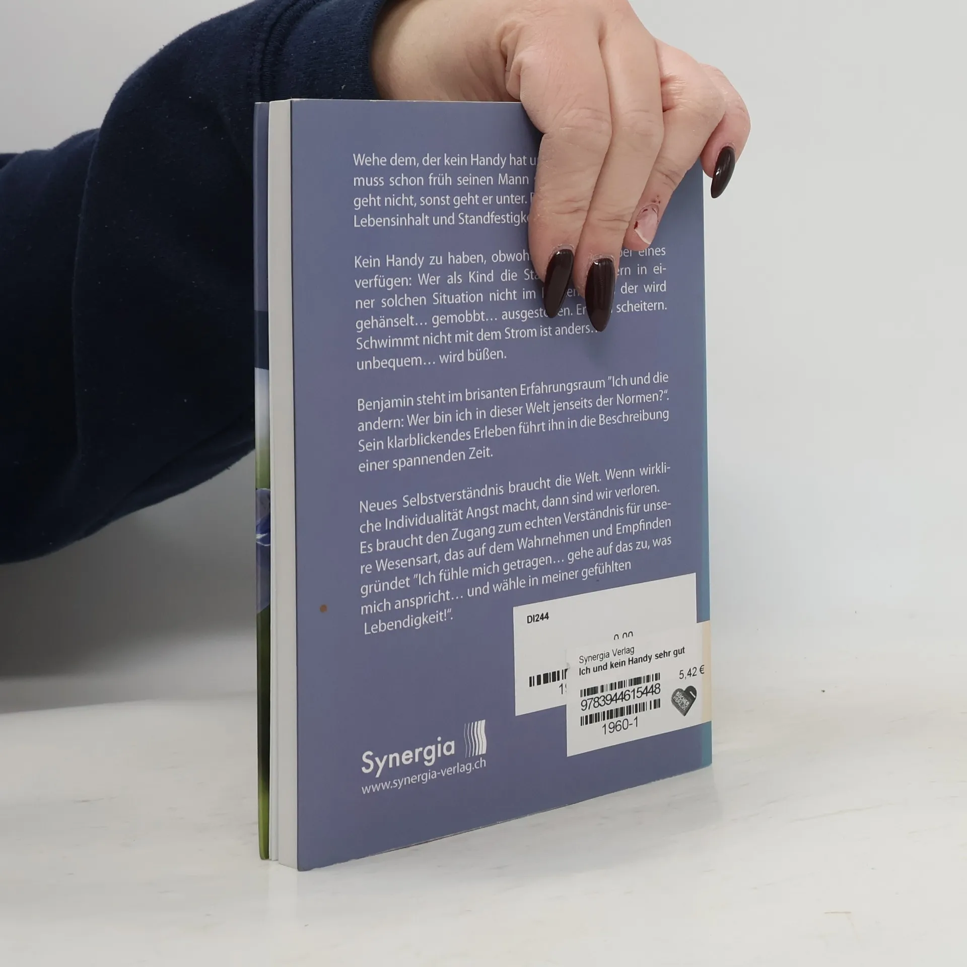 Wehe dem, der kein Handy hat und noch ein Kind ist. Der muss schon früh seinen Mann stehen. An-sich-Zweifeln geht nicht, sonst geht er unter. Es braucht eigenen Lebensinhalt und Standfestigkeit. Kein Handy zu haben, obwohl alle anderen über eines verfügen: Wer als Kind die Stärke seiner Eltern in einer solchen Situation nicht im Rücken spürt, der wird gehänselt… gemobbt… ausgestoßen. Er wird scheitern. Schwimmt nicht mit dem Strom ist anders… unbequem… wird büßen. Benjamin steht im brisanten Erfahrungsraum „Ich und die andern: Wer bin ich in dieser Welt jenseits der Normen?“. Sein klarblickendes Erleben führt ihn in die Beschreibung einer spannenden Zeit. Neues Selbstverständnis braucht die Welt. Wenn wirkliche Individualität Angst macht, dann sind wir verloren. Es braucht den Zugang zum echten Verständnis für unsere Wesensart, das auf dem Wahrnehmen und Empfinden gründet „Ich fühle mich getragen… gehe auf das zu, was mich anspricht… und wähle in meiner gefühlten Lebendigkeit!“.