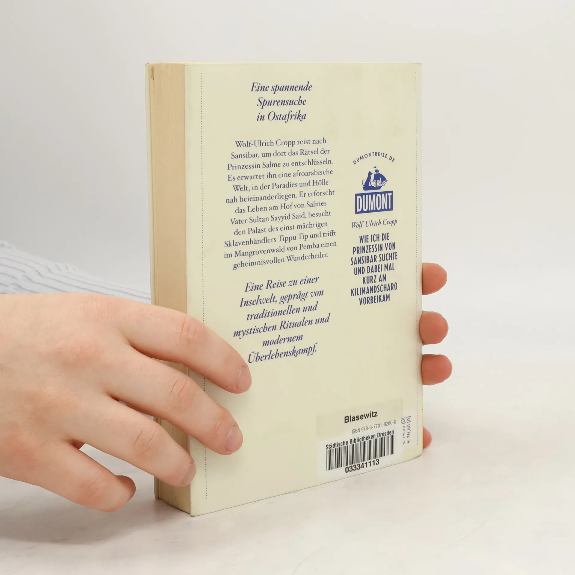 Das Abenteuer Sansibar beginnt auf dem Ohlsdorfer Friedhof in Hamburg. Auf einem Gedenkstein entdeckt Wolf-Ulrich Cropp den Hinweis auf Emily Ruete, geborene Salme, Prinzessin von Sansibar. Neugierde und Entdeckerdrang wecken in Cropp den Wunsch, die ferne Inselwelt der Prinzessin zu erkunden. Der Weg nach Sansibar führt ihn zunächst zum Fuß des Kilimandscharos, der höchsten Erhebung Afrikas und Lebensraum der Massai. Weiter geht es mit dem Überlandbus an die ostafrikanische Küste, entlang der alten Karawanen-, Sklaven- und Elfenbeinroute, nach Dar es Salaam und Bagamoyo. Auf abenteuerlichen Wegen erreicht Cropp schließlich mit einer schiffbrüchigen Dhau Sansibar, die afroarabische Welt aus Tausendundeiner Nacht. Er erkundet das Inselkleinod im Indischen Ozean, die Tour nach Stone Town wird zu einer Zeitreise zurück in die Welt der Sultane und Kalifen. Schließlich kommt es zu einer unerwarteten Begegnung: An den Palastruinen von il Mtoni erscheint eine geheimnisvolle Frau und berichtet dem Autor aus dem spannenden Leben der Prinzessin Salme ...