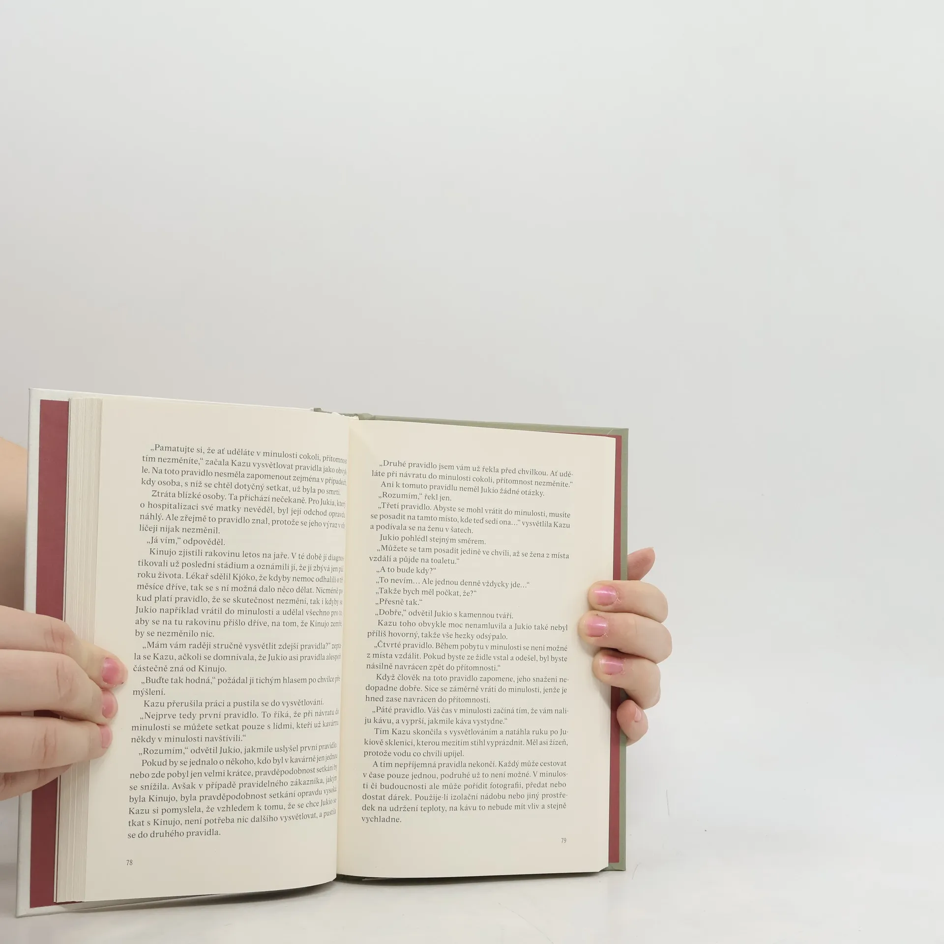 Další návštěva podivuhodné tokijské kavárny Funiculi funicula, která za jistých podmínek umožňuje naplnit novodobou legendu o putování v čase. Japonská kavárna Funiculi funicula už umožnila cestovat v čase mnoha lidem. Tentokrát se pro návrat do minulosti rozhodnou čtyři muži, kteří by udělali cokoli, aby se ještě jednou setkali se svými blízkými. Teď, když pochopili, že život může vychladnout stejně rychle jako káva, musí svým milovaným naposled něco sdělit. Jen tak najdou sílu změnit svůj pohled na život a pokusí se v něm znovu najít štěstí. Nakladatelská anotace.