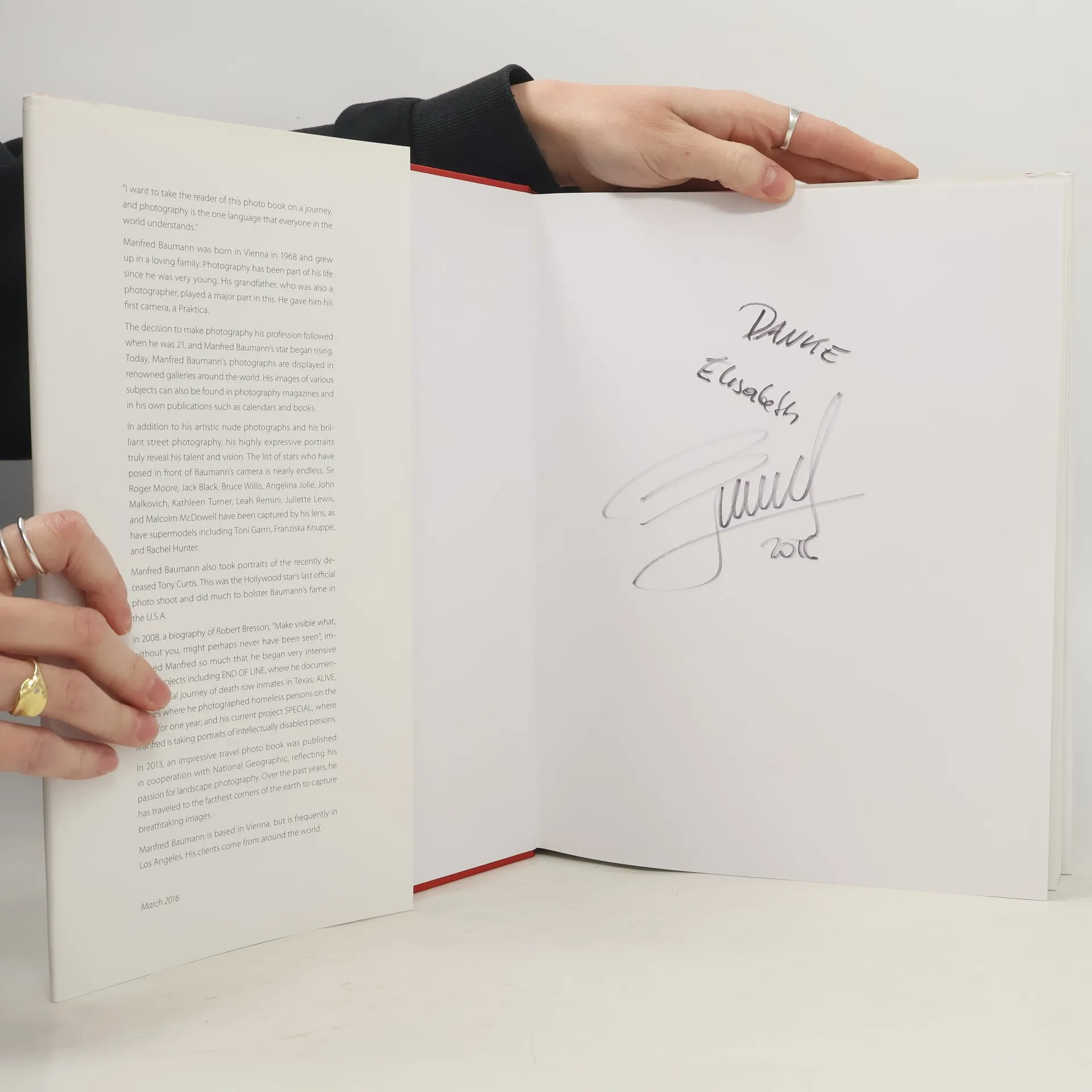 „Ich möchte den Betrachter dieses Bildbandes auf eine Reise mitnehmen, die Fotografie ist die einzige Sprache, die überall in der Welt verstanden werden kann.“ Der international bekannte Fotograf Manfred Baumann präsentiert einen aufregenden Querschnitt aus seinen Werken von 1991-2016. Neben Porträtfotografien zahlreicher bekannter Persönlichkeiten finden auch andere interessante Gesichter ihren Platz, genauso wie faszinierende Landschaftsbilder und beeindruckende Momentaufnahmen. “I want to take the reader of this photo book on a journey, and photography is the one language that everyone in the world understands.” Internationally renowned photographer Manfred Baumann presents an exciting overview of his work from 1991-2016. The collection includes portraits of numerous famous personalities as well as other interesting faces, fascinating landscapes and impressive snapshots.