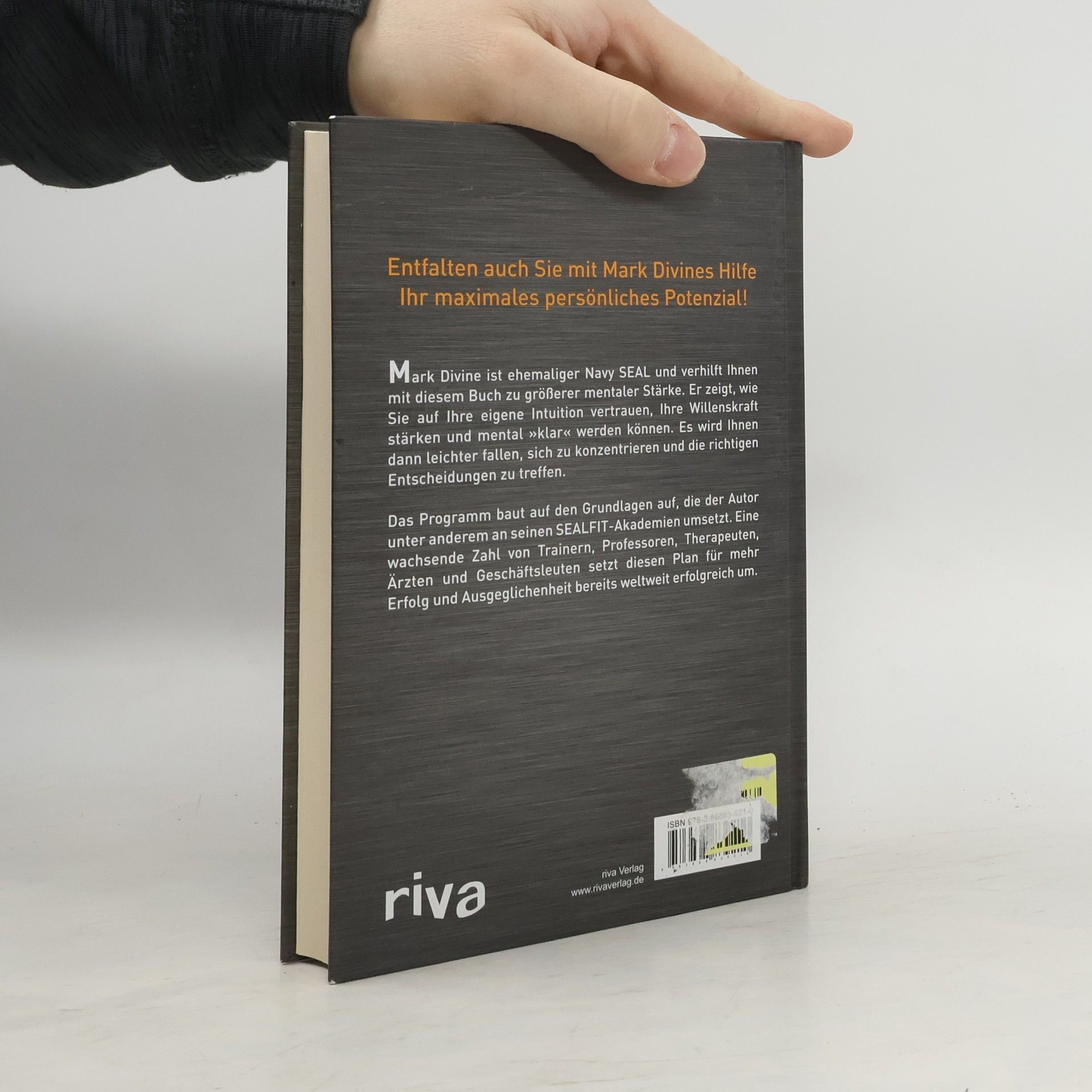 Mark Divine ist ehemaliger Navy SEAL und verhilft mit diesem Buch jedem Leser zu größerer mentaler Stärke. Er zeigt auf, wie man auf die eigene Intuition vertraut, seine Willenskraft stärkt und mental „klar“ wird. Daraus resultieren wiederum eine höhere Konzentration und eine optimierte Entscheidungsfähigkeit. Der Autor baut sein Programm auf den Grundlagen von Charakterbildung und dem Schaffen von mentaler Stärke auf, das er unter anderem auch an seinen SEALFIT Akademien umsetzt. Eine wachsende Zahl von Trainern, Professoren, Therapeuten, Ärzten und Geschäftsleuten setzt dieses Programm für mehr Erfolg und Ausgeglichenheit bereits weltweit erfolgreich um. Mark Divine bringt jedem Leser bei, sein maximales persönliches Potenzial zu entfalten.