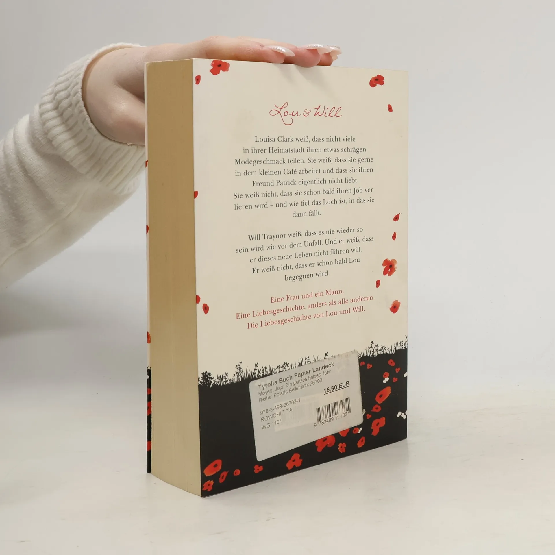 Lou & Will. Louisa Clark weiß, dass nicht viele in ihrer Heimatstadt ihren etwas schrägen Modegeschmack teilen. Sie weiß, dass sie gerne in dem kleinen Café arbeitet und dass sie ihren Freund Patrick eigentlich nicht liebt. Sie weiß nicht, dass sie schon bald ihren Job verlieren wird – und wie tief das Loch ist, in das sie dann fällt. Will Traynor weiß, dass es nie wieder so sein wird wie vor dem Unfall. Und er weiß, dass er dieses neue Leben nicht führen will. Er weiß nicht, dass er schon bald Lou begegnen wird. Eine Frau und ein Mann. Eine Liebesgeschichte, anders als alle anderen. Die Liebesgeschichte von Lou und Will.