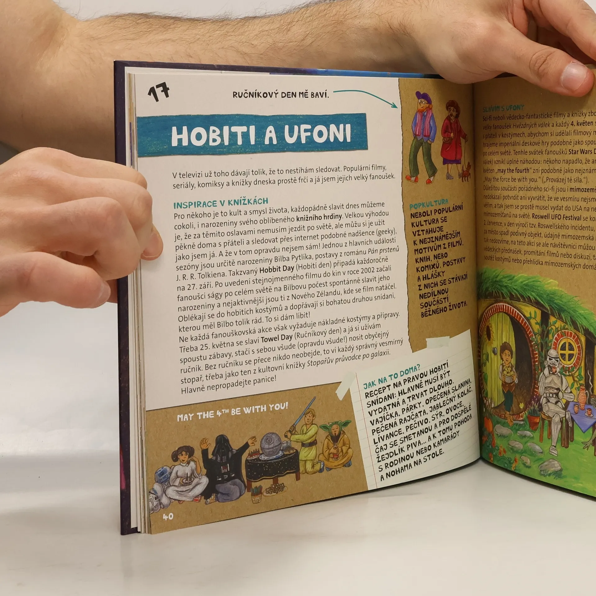 Nevšední encyklopedie o různých svátcích, festivalech a oslavách světa je určena všem cestovatelům od 9 let, ať už jezdí s opravdovým batohem na zádech, nebo jen prstem po mapě. Kniha odpovídá i na otázky proč lidé oslavují a z jakého důvodu jejich oslava vypadá právě tak, jak vypadá. Objevte spolu s cestovatelem Tomášem, jak nádherný, pestrý, pozitivní a barevný je náš svět a jaké neuvěřitelné věci lidé vymysleli, aby se mohli pobavit.