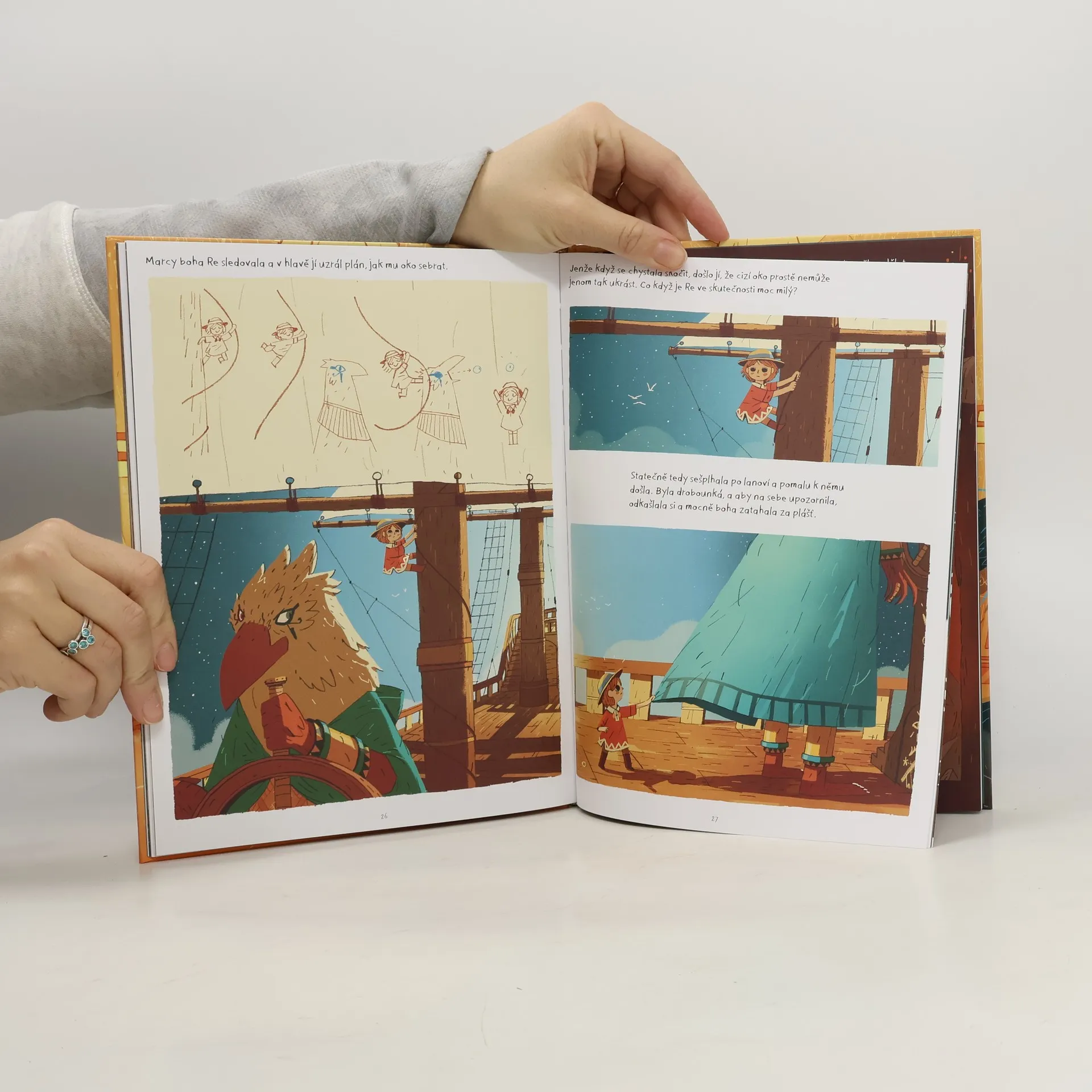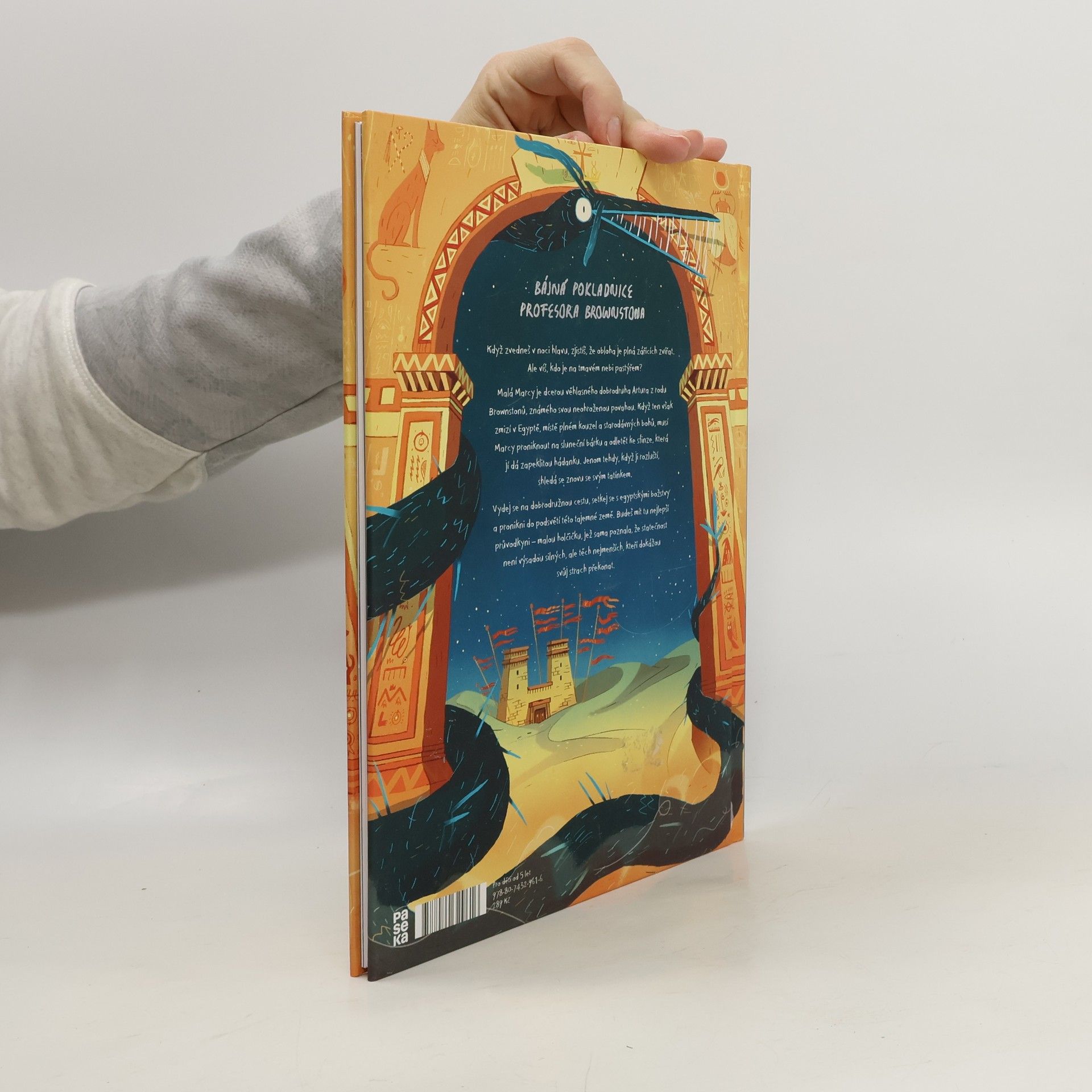 Milá čtenářko, milý čtenáři, když zvedneš v noci hlavu, zjistíš, že obloha je plná zářících zvířat. Ale víš, kdo je na tmavém nebi pastýřem? Malá Marcy je dcerou věhlasného dobrodruha Artura z rodu Brownstonů, známého svou neohroženou povahou. Když ten však zmizí v Egyptě, místě plném kouzel a starodávných bohů, musí Marcy proniknout na sluneční bárku a odletět ke sfinze, která jí dá zapeklitou hádanku. Jenom tehdy, když ji rozluští, shledá se znovu se svým tatínkem. Vydej se na dobrodružnou cestu, setkej se s egyptskými božstvy a pronikni do podsvětí této tajemné země. Budeš mít tu nejlepší průvodkyni - malou holčičku, jež sama poznala, že statečnost není výsadou silných, ale těch nejmenších, kteří dokážou svůj strach překonat.
