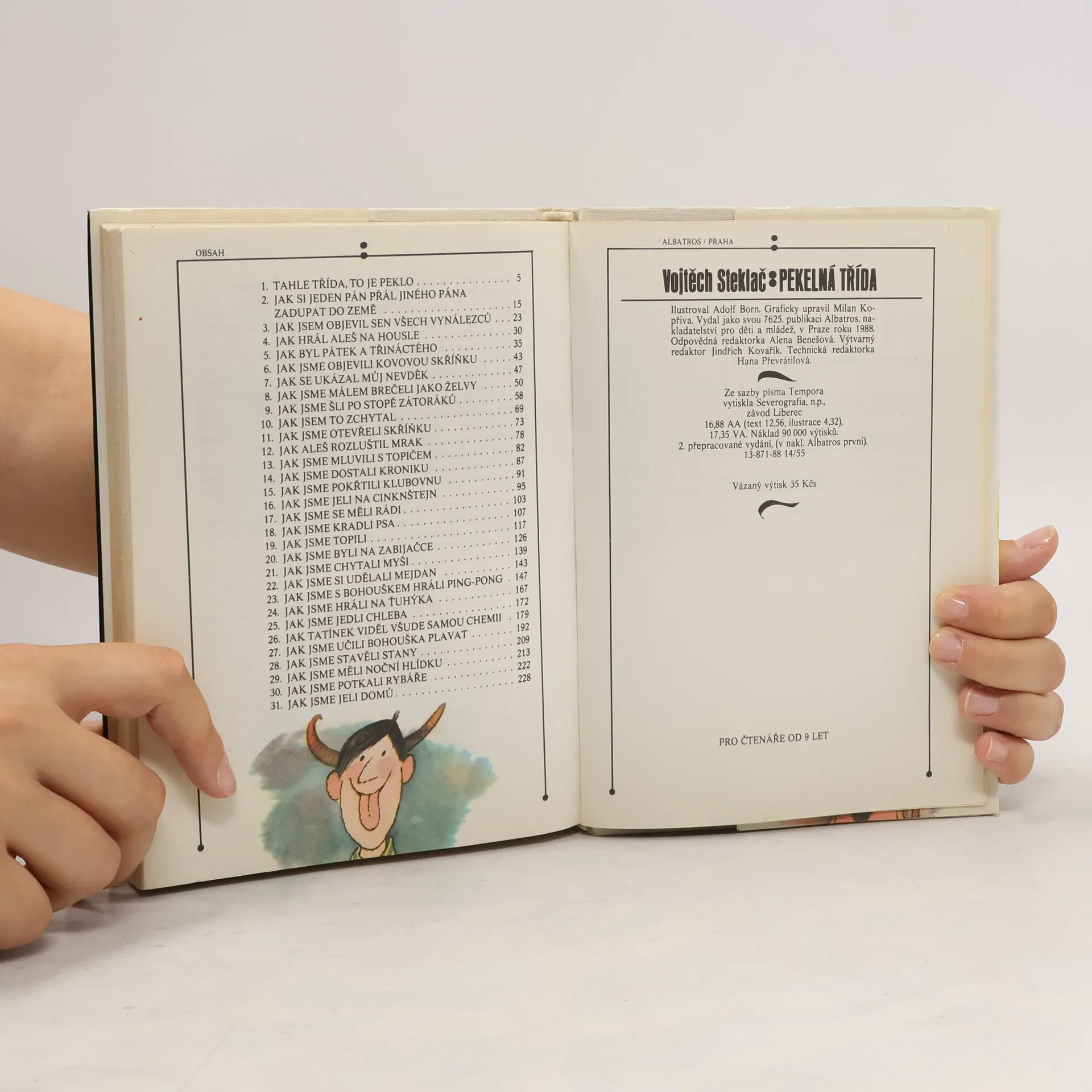 Veselé školní i mimoškolní historky oblíbené Boříkovy party z Holešovic. Osvědčené čtení plné legrace pro kluky i holky v novém, upraveném vydání. Pekelná třída - to je parta, se kterou jste se seznámili již ve třech knížkách boříkovských lapálií. Jistě si knížku rádi přečtete i kvůli půvabným barevným ilustracím Adolfa Borna. Dozvíte se v ní, jak vnímají září, jak si celý školní rok zpestřují nejrůznějšími vylomeninami, co všechno je láká ve Stromovce, jak se potýkají se Zátoráky, jak si udělali mejdan, jak se vypořádávají se šplhounem Bohouškem, jak doma válčí s rodiči. Není divu, že jejich nebohá paní třídní učitelka, něžně přezdívaná Drábinka, se často chytá za hlavu a volá: "Tahle třída, to je peklo!"