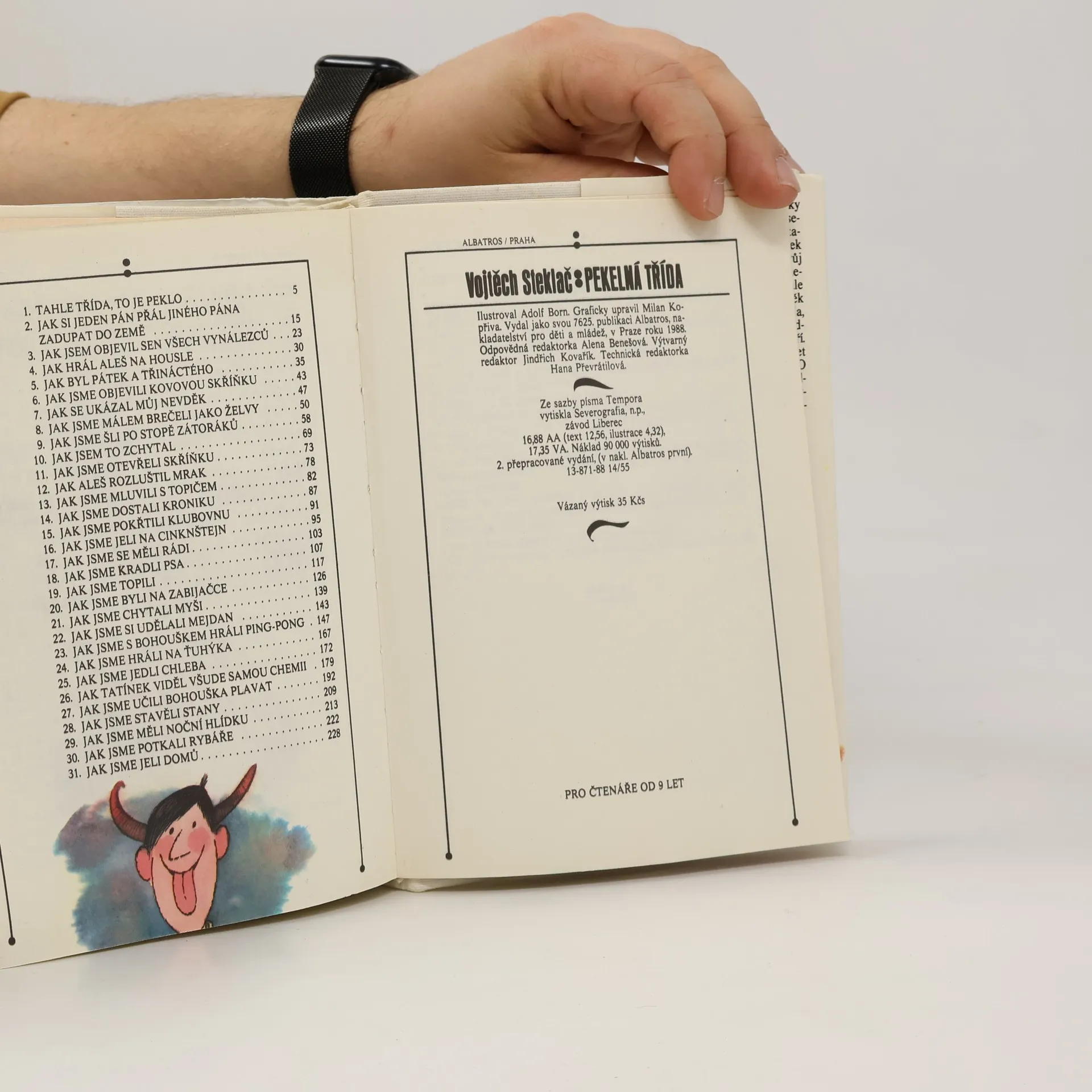 Veselé školní i mimoškolní historky oblíbené Boříkovy party z Holešovic. Osvědčené čtení plné legrace pro kluky i holky v novém, upraveném vydání. Pekelná třída - to je parta, se kterou jste se seznámili již ve třech knížkách boříkovských lapálií. Jistě si knížku rádi přečtete i kvůli půvabným barevným ilustracím Adolfa Borna. Dozvíte se v ní, jak vnímají září, jak si celý školní rok zpestřují nejrůznějšími vylomeninami, co všechno je láká ve Stromovce, jak se potýkají se Zátoráky, jak si udělali mejdan, jak se vypořádávají se šplhounem Bohouškem, jak doma válčí s rodiči. Není divu, že jejich nebohá paní třídní učitelka, něžně přezdívaná Drábinka, se často chytá za hlavu a volá: "Tahle třída, to je peklo!"