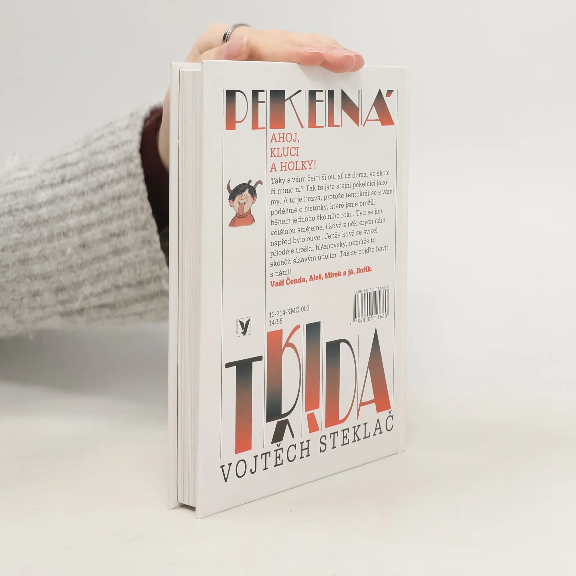 Veselé školní i mimoškolní historky oblíbené Boříkovy party z Holešovic. Osvědčené čtení plné legrace pro kluky i holky v novém, upraveném vydání. Pekelná třída - to je parta, se kterou jste se seznámili již ve třech knížkách boříkovských lapálií. Jistě si knížku rádi přečtete i kvůli půvabným barevným ilustracím Adolfa Borna. Dozvíte se v ní, jak vnímají září, jak si celý školní rok zpestřují nejrůznějšími vylomeninami, co všechno je láká ve Stromovce, jak se potýkají se Zátoráky, jak si udělali mejdan, jak se vypořádávají se šplhounem Bohouškem, jak doma válčí s rodiči. Není divu, že jejich nebohá paní třídní učitelka, něžně přezdívaná Drábinka, se často chytá za hlavu a volá: "Tahle třída, to je peklo!"