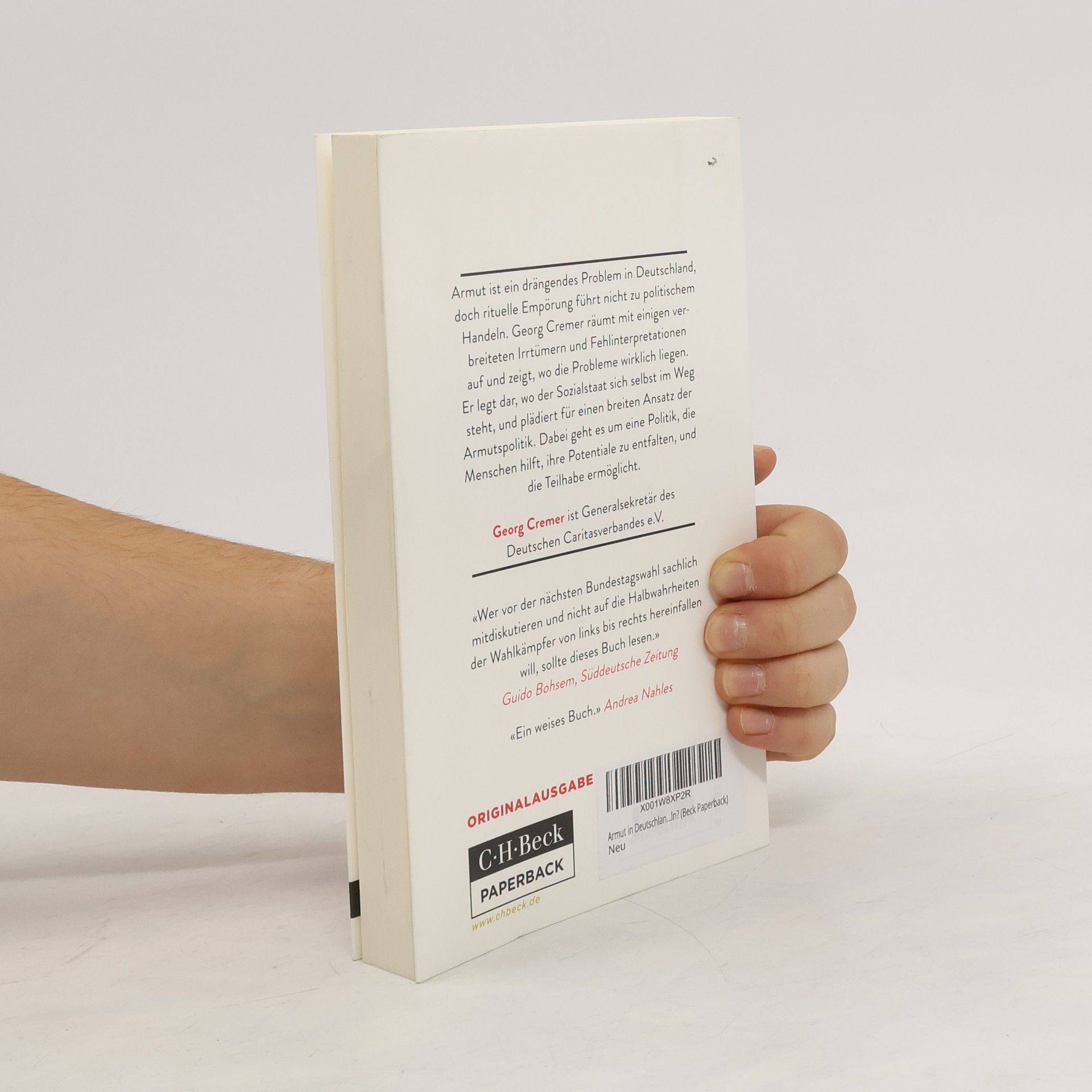 Armut ist ein drängendes Problem in Deutschland, doch rituelle Empörung führt nicht zu politischem Handeln. Georg Cremer räumt mit einigen verbreiteten Irrtümern und Fehlinterpretationen auf und zeigt, wo die Probleme wirklich liegen. Er legt dar, wo der Sozialstaat sich selbst im Weg steht, und plädiert für einen breiten Ansatz der Armutspolitik. Dabei geht es um eine Politik die Menschen hilft, ihre Potenziale zu entfalten, und die Teilhabe ermöglicht. Die Armutsdebatte in Deutschland nützt den Armen nicht. Sie bietet keine Orientierung darüber, wie Armut wirksam zu bekämpfen ist. Die Superlative der Skandalisierung rütteln nicht auf, sondern stumpfen ab. Und sie befördern die Angst in der Mitte der Gesellschaft, die sich ohnehin bereits im Abstieg wähnt. Das schadet den Armen, denn gegen der Widerstand der Mitte ist Menschen am Rande der Gesellschaft nicht wirksamn zu helfen. Das Buch wirft einen nüchternen Blick auf die Problemzonen und Herausforderungen der Armutspolitik und macht konkrete Vorschläge, wie Armut zu bekämpfen ist.