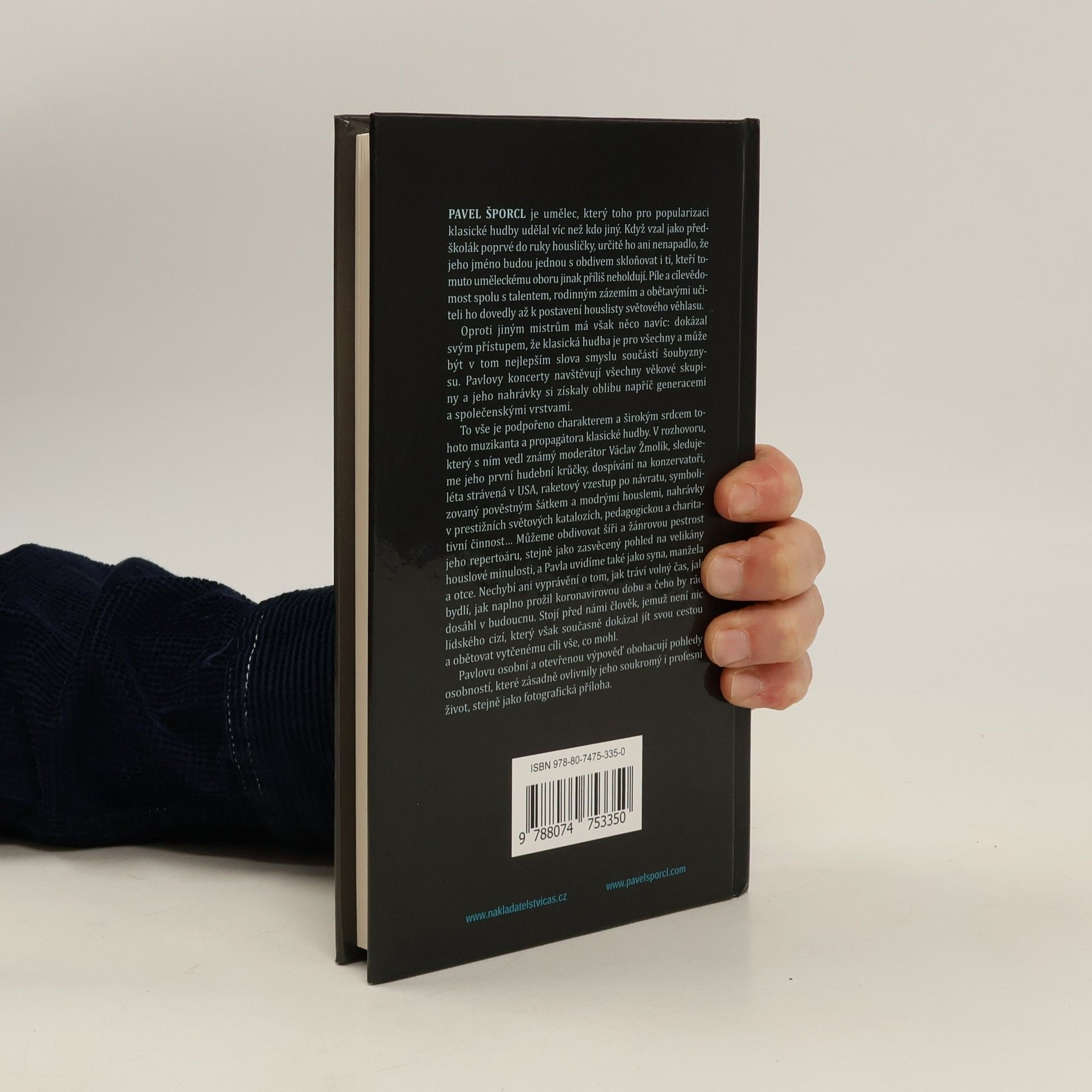 Pavel Šporcl je umělec, který významně přispěl k popularizaci klasické hudby. Když jako dítě poprvé vzal do rukou housle, netušil, že se jeho jméno stane známým i mimo okruh hudebních nadšenců. Díky píli, talentu, rodinnému zázemí a podporujícím učitelům se vypracoval na houslistu světového formátu. Jeho unikátní schopnost spojit klasickou hudbu s kvalitní zábavou přitahuje publikum všech věkových kategorií, a jeho nahrávky si získaly oblibu napříč generacemi. V rozhovoru s moderátorem Václavem Žmolíkem se dozvídáme o jeho hudebních začátcích, studiu na konzervatoři, letech strávených v USA a rychlém vzestupu po návratu, symbolizovaném jeho charakteristickým šátkem a modrými houslemi. Obdivujeme jeho široký repertoár a zasvěcený pohled na houslové velikány minulosti, ale také Pavlovu roli syna, manžela a otce. Zmiňuje, jak tráví volný čas, jak prožil koronavirovou dobu a jaké má cíle do budoucna. Je to člověk, který se nebojí být sám sebou, a přesto se mu podařilo obětovat vše pro své cíle. Pavlovu osobní výpověď doplňují názory osobností, které ovlivnily jeho život, a mnohé dosud nepublikované fotografie.