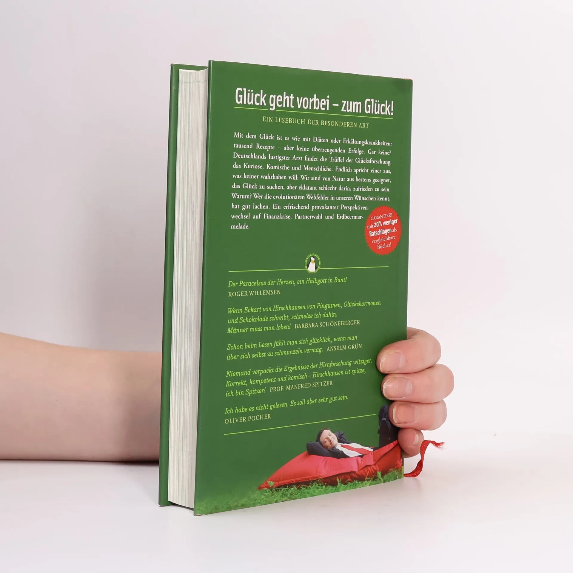 Glück geht vorbei - zum Glück!Mit dem Glück ist es wie mit Diäten oder Erkältungskrankheiten: tausend Rezepte - aber keine überzeugenden Erfolge. Gar keine? Deutschlands lustigster Arzt findet die Trüffel der Glücksforschung, das Kuriose, Komische und Menschliche. Endlich spricht einer aus, was keiner wahrhaben will: Wir sind von Natur aus bestens geeignet, das Glück zu suchen, aber eklatant schlecht darin, zufrieden zu sein. Warum? Wer die evolutionären Webfehler in unseren Wünschen kennt, hat gut lachen. Ein erfrischen provokanter Perpektivenwechsel auf Finanzkrise, Partnerwahl und Erdbeermarmelade.