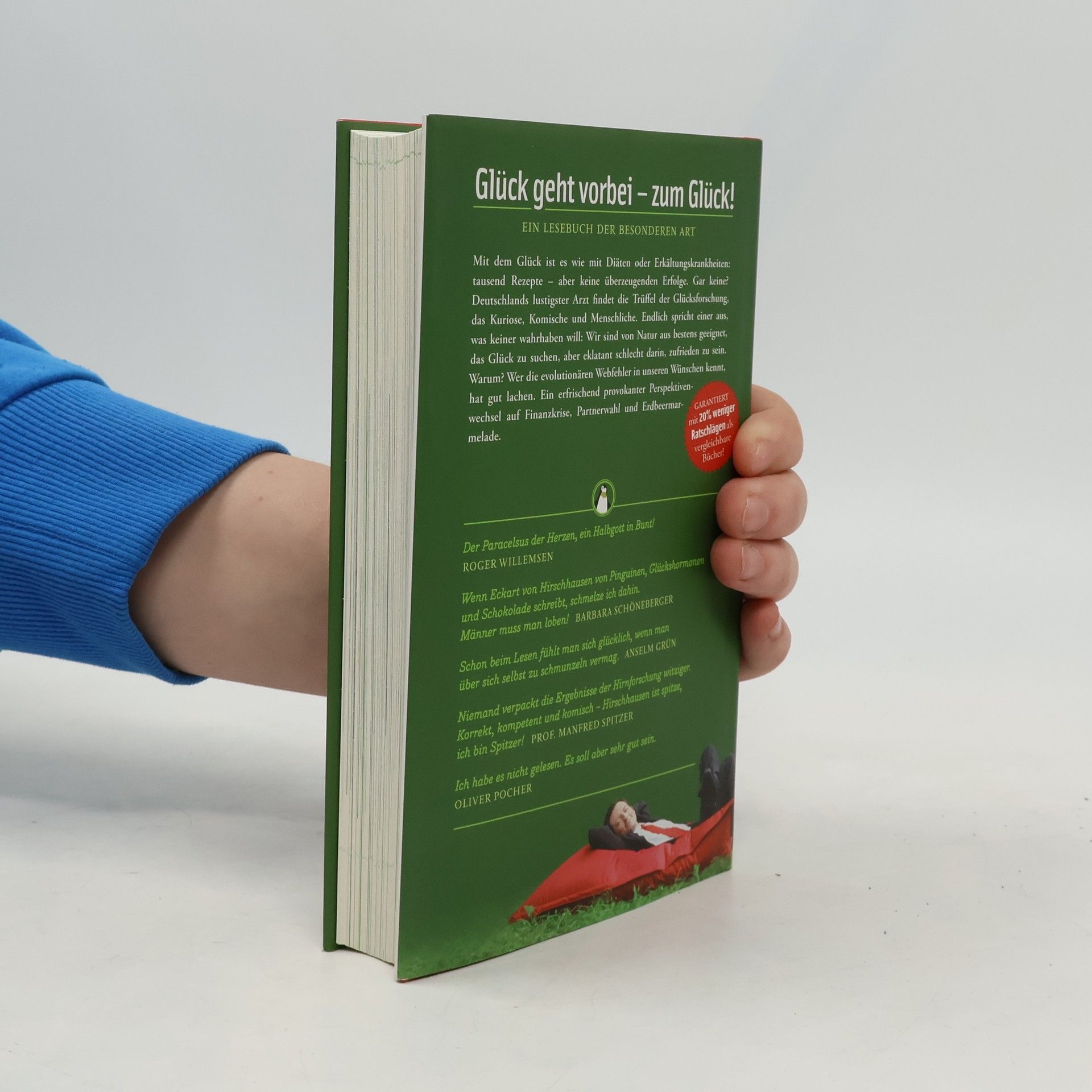 Glück geht vorbei - zum Glück!Mit dem Glück ist es wie mit Diäten oder Erkältungskrankheiten: tausend Rezepte - aber keine überzeugenden Erfolge. Gar keine? Deutschlands lustigster Arzt findet die Trüffel der Glücksforschung, das Kuriose, Komische und Menschliche. Endlich spricht einer aus, was keiner wahrhaben will: Wir sind von Natur aus bestens geeignet, das Glück zu suchen, aber eklatant schlecht darin, zufrieden zu sein. Warum? Wer die evolutionären Webfehler in unseren Wünschen kennt, hat gut lachen. Ein erfrischen provokanter Perpektivenwechsel auf Finanzkrise, Partnerwahl und Erdbeermarmelade.