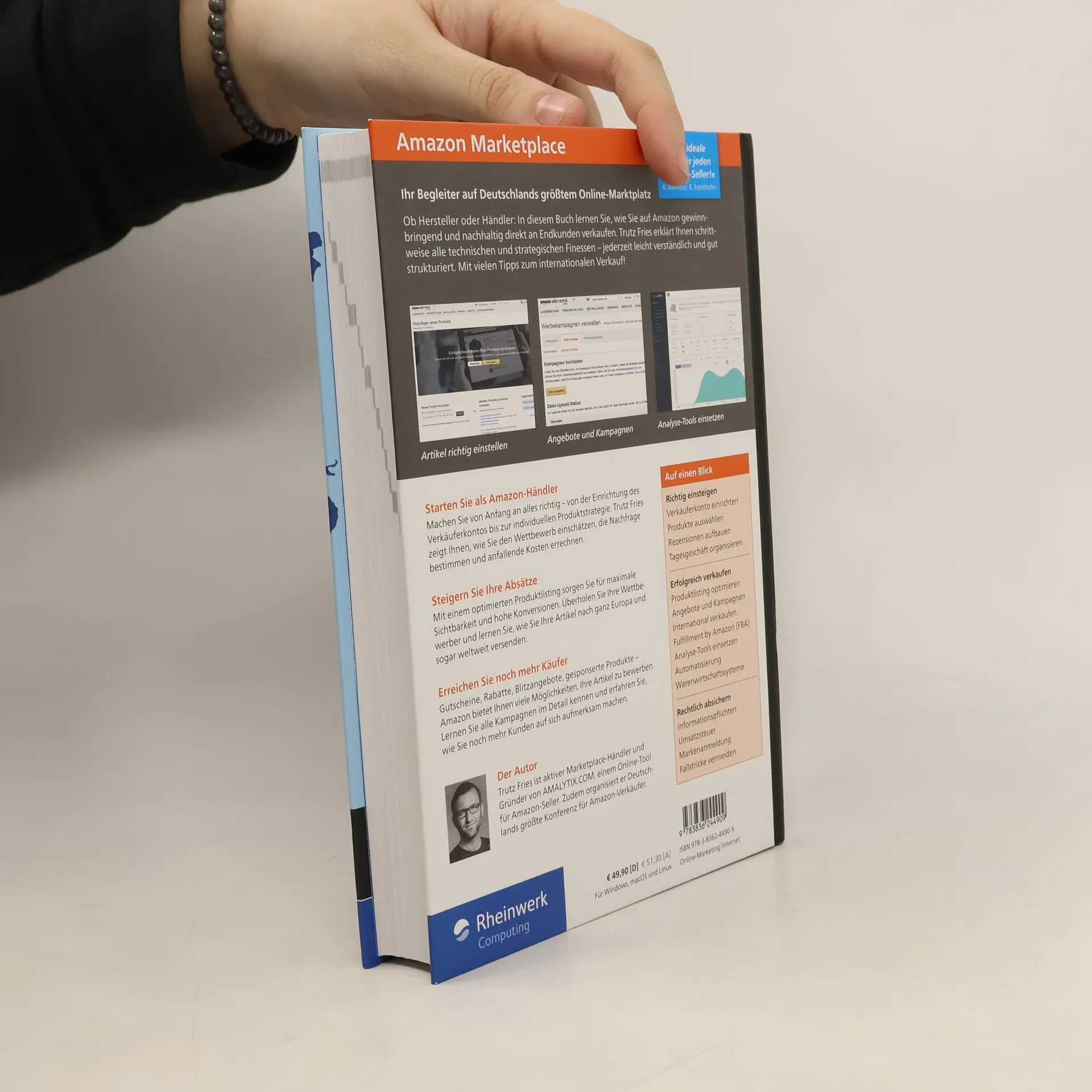 Wenn Sie erfolgreich auf dem Amazon Marketplace verkaufen wollen, benötigen Sie einen Begleiter, der Ihnen von Anfang an zeigt, worauf es ankommt. Lernen Sie, welche Produkte sich überhaupt für den Vertrieb auf Amazon eignen, welche Möglichkeiten Sie für den Versand haben. Was ein gutes Produktlisting auszeichnet und wie man an gute Bewertungen kommt, erfahren Sie hier detailliert und praxisnah. Mit konkreten Tipps zu Absatzsteigerung, Selbstorganisation, Prozessautomatisierung, Markenführung und Erfolgsmessung. Aus dem Inhalt: Verkäuferkonto einrichten Kriterien bei der Produktauswahl Versand durch Amazon (FBA), internationale Expansion Perfekte Produktlistings erstellen Gute Rezensionen erhalten Maßnahmen zur Absatzsteigerung Gesponserte Produkte, Gutscheine, Rabatte, Blitzangebote International verkaufen Erfolgsanalyse Markenaufbau und Pflege Prozessautomatisierung, ERP-Anbindung