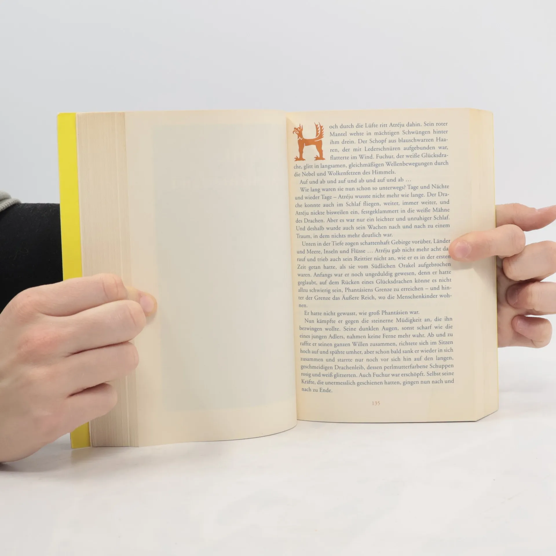 Bastian entdeckt in einem Antiquariat ein Buch, das ihn magisch anzieht: »Die unendliche Geschichte«. Er liest darin vom Reich Phantásien, in dem sich auf unheimliche Weise das Nichts ausbreitet, und vom jungen Krieger Atréju, der auf der Suche nach einem Menschenkind ist, das die »Kindliche Kaiserin« von ihrer schweren Krankheit heilen kann. Bald merkt Bastian, dass er immer mehr in die Handlung hineingerät. Sollte er selbst jenes Menschenkind sein?