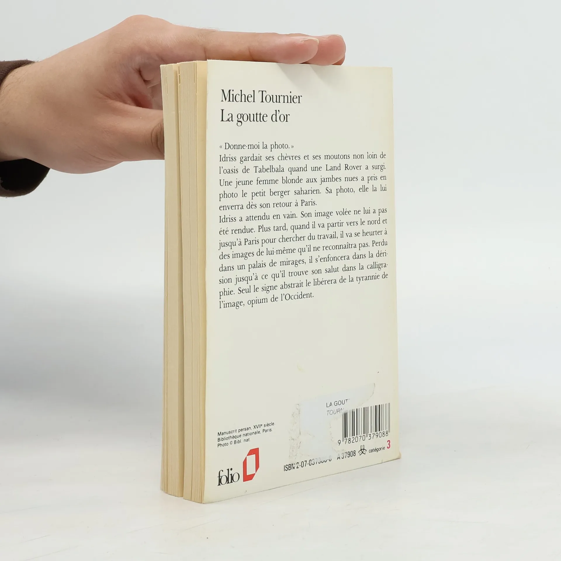 «Donne-moi la photo.»Idriss gardait ses chèvres et ses moutons non loin de l'oasis de Tabelbala quand une Land Rover a surgi. Une jeune femme blonde aux jambes nues a pris en photo le petit berger saharien. Sa photo, elle la lui enverra dès son retour à Paris.Idriss a attendu en vain. Son image volée ne lui a pas été rendue. Plus tard, quand il va partir vers le nord et jusqu'à Paris pour chercher du travail, il va se heurter à des images de lui-même qu'il ne reconnaîtra pas. Perdu dans un palais de mirages, il s'enfoncera dans la dérision jusqu'à ce qu'il trouve son salut dans la calligraphie. Seul le signe abstrait le libérera de la tyrannie de l'image, opium de l'Occident.