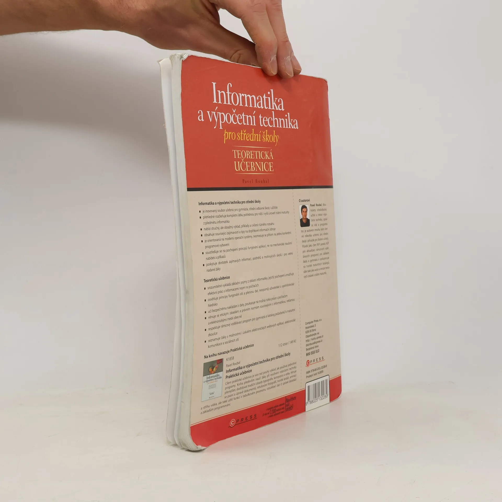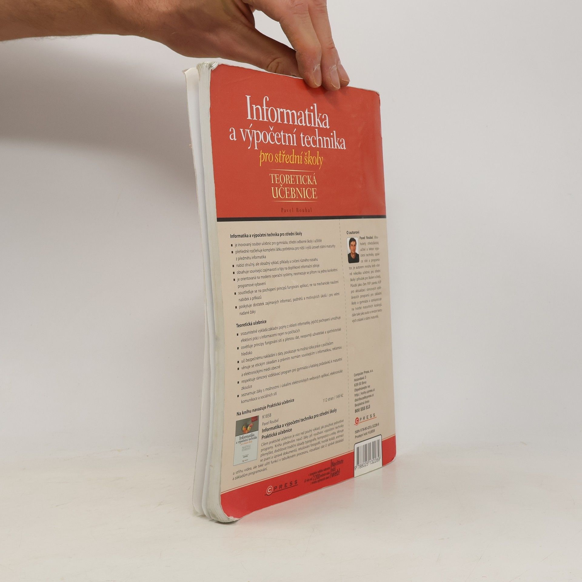 Informatika a výpočetní technika pro střední školy je nový moderní soubor učebnic pro gymnázia, střední odborné školy i učiliště nabízí stručný, ale obsažný výklad, příklady a cvičení různého rozsahu obsahuje související zajímavosti a tipy na doplňkové informační zdroje soustřeďuje se na pochopení principů fungování aplikací, ne na mechanické naučení nabídek a příkazů rozdělením do více dílů lépe umožňuje vlastní výběr probíraných témat Teoretická učebnice srozumitelně vykládá základní pojmy z oblasti informatiky, jejichž pochopení umožňuje efektivní práci s informacemi (nejen) na počítačích blíže se věnuje popisu softwarového i hardwarového vybavení a sítí, neopomíjí uživatelské a spotřebitelské hledisko učí bezpečnému nakládání s daty, poukazuje na možná rizika práce s počítačem stručně seznamuje s principy programování a práce s databázemi respektuje rámcový vzdělávací program pro gymnázia a katalog požadavků k maturitní zkoušce Další díly Praktická učebnice 1 (základy práce s PC, Internet, text a tabulky) Praktická učebnice 2 (grafika a fotografie, tvorba prezentací a webových stránek) Praktická učebnice 3 (práce s databázemi) Praktická učebnice 4 (algoritmizace a programování) Metodická příručka pro praktické učebnice 1 a 2 Metodická příručka pro praktické učebnice 3 a 4 O autorovi: Pavel Roubal je zkušený autor mnoha knih včetně několika učebnic pro střední školy, ale také manuálů pro školení učitelů projektu SIPVZ (úrovně Z a modulu Grafika a digitální fotografie).