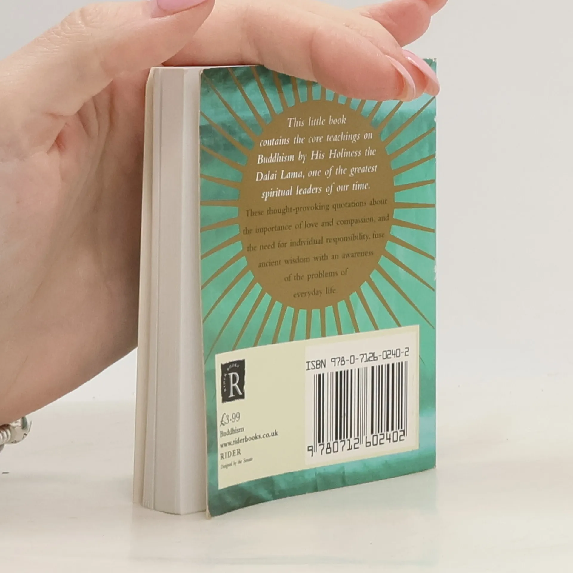 A jewel of a book of Buddhist sayings by the Dalai Lama.This special little book contains the core teachings on Buddhism by His Holiness the Dalai Lama, one of the great spiritual leaders of our time. He has captured the attention and admiration of the world through his wisdom. These thought-provoking quotations about the importance of love and compassion, and the need for individual responsibility, fuse ancient wisdom with an awareness of the problems of everyday life.