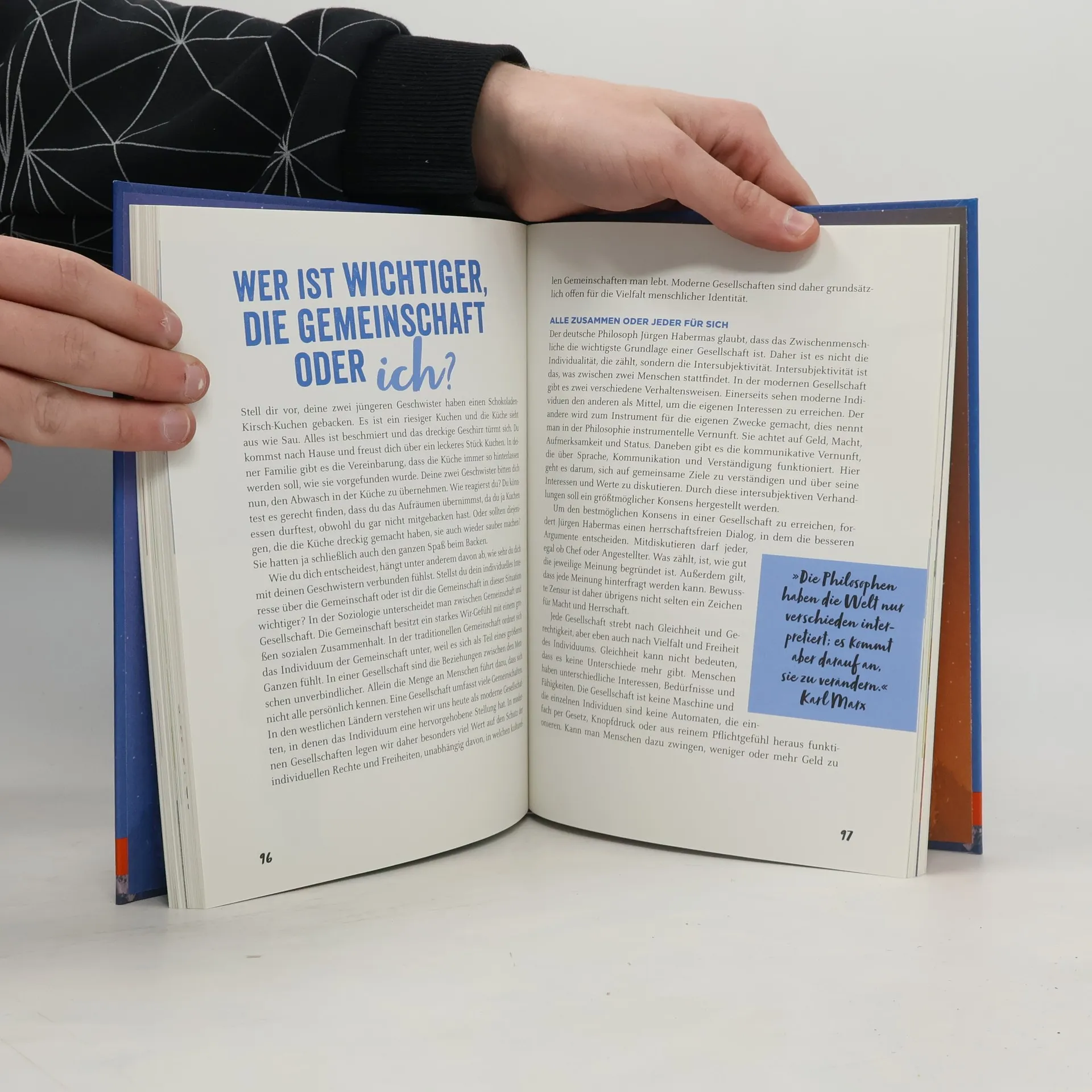 Denken ist ein Abenteuer, das dich verändern kann. Wage den Sprung und hinterfrage deine Welt: Zu Themen von Natur und Tieren über Liebe, Gesellschaft und Medien bis zum Sinn des Lebens findest du hier philosophische Theorien, Thesen, Fragen und Gedankenexperimente. Fülle sie mit deinen Ideen und Erfahrungen, denn Philosophieren bedeutet selbst denken und handeln!