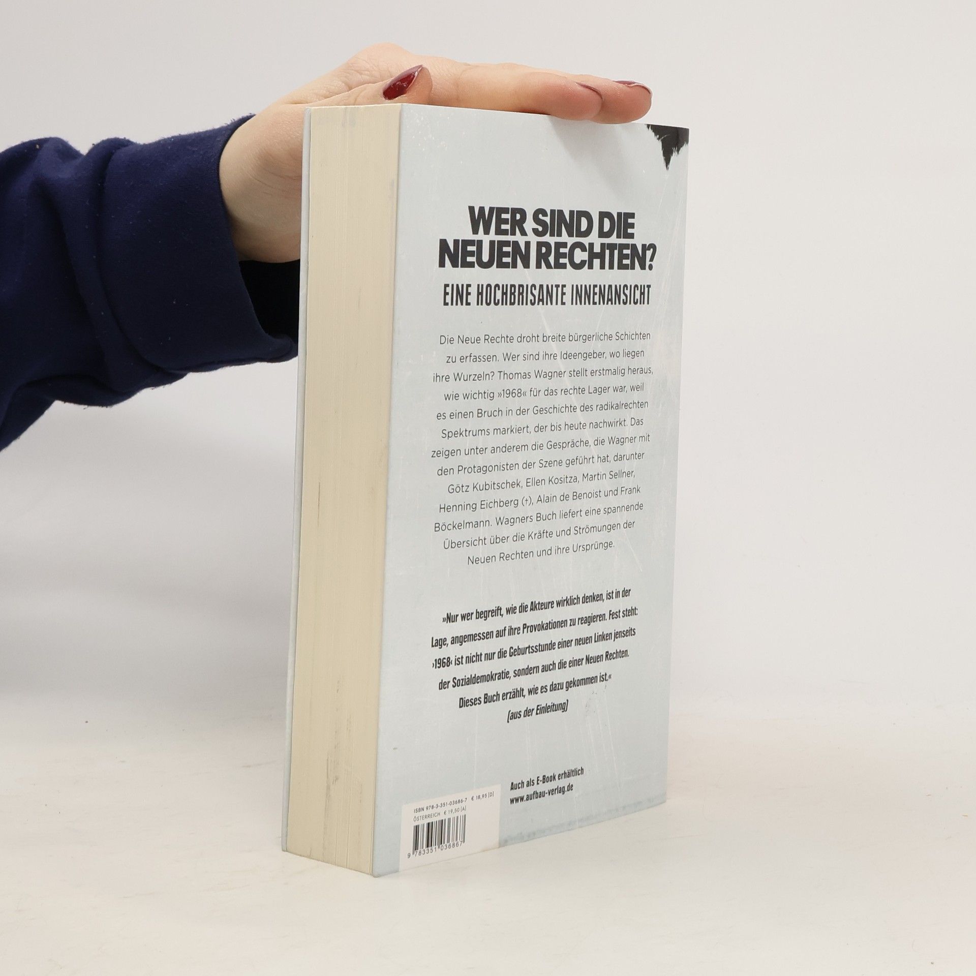 Wer sind die Neuen Rechten – eine hochbrisante Innenansicht Mit dem Aufkommen der AfD droht die Neue Rechte breite bürgerliche Schichten zu erfassen. Wer sind ihre Ideengeber, und wo haben sie ihre Wurzeln? Thomas Wagner hat exklusive Gespräche mit den Protagonisten der Szene geführt, darunter Götz Kubitschek, Martin Sellner und Alain de Benoist. 1968 ist der Ursprung des linksalternativen Narrativs unserer Zeit, dort wurden die Werte durchgesetzt, die uns heute immer noch zutiefst prägen: Meinungspluralismus, Demokratie, Gleichberechtigung, Emanzipation, Toleranz etc. Dass jedoch 1968 auch ein Neubeginn der politischen Rechten in Deutschland war, scheint auf den ersten Blick überraschend. Aber genau das war der Fall. 1968 markiert einen Bruch in der Geschichte des radikalrechten politischen Spektrums, der bis heute nachwirkt: Das Aufkommen rechtspopulistischer Bewegungen wie Pegida und Teile der AfD sind direkt auf diese Zeit zurückzuführen. Diesen überraschenden Befund stellt Thomas Wagners Buch überzeugend dar. Er zeigt Verbindungen auf, mit denen man wohl nicht gerechnet hätte, die aber essentiell sind zum Verständnis unserer Gegenwart und aktueller politischer Entwicklungen. »Gestandene rechtskonservative Politiker und Professoren rennen gegen das Establishment an. Fünfzig Jahre zuvor waren es noch linke Studenten.« aus: Die Angstmacher