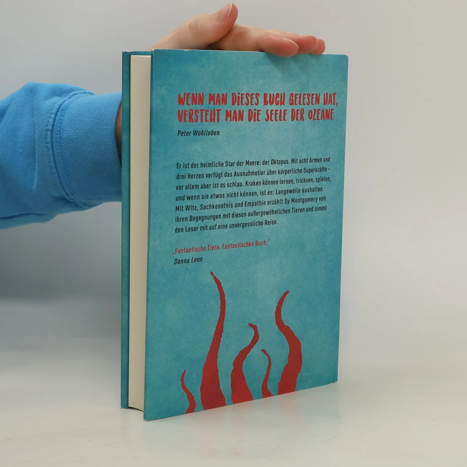 Er kann 1600 Küsse auf einmal verteilen, er kann mit der Haut schmecken, Farbe und Form ändern und sich durch winzige Öffnungen zwängen: der Oktopus. Das achtarmige Wunderwesen der Meere ist darüber hinaus auch noch schlau. Der Oktopus kann spielen, lernen und mit dem Menschen Kontakt aufnehmen. In ihrem preisgekrönten Buch erzählt die Naturforscherin Sy Montgomery auf berührende, kenntnisreiche, unterhaltsame Weise von ihren Begegnungen mit diesen außergewöhnlichen Tieren und wirft eine bemerkenswerte Frage auf: Haben Kraken ein Bewusstsein? Das Nachwort wurde eigens für die deutsche Ausgabe von einem Fan dieses Buches verfasst: Donna Leon. „Wenn man dieses Buch gelesen hat, versteht man die Seele der Ozeane.“ – Peter Wohlleben