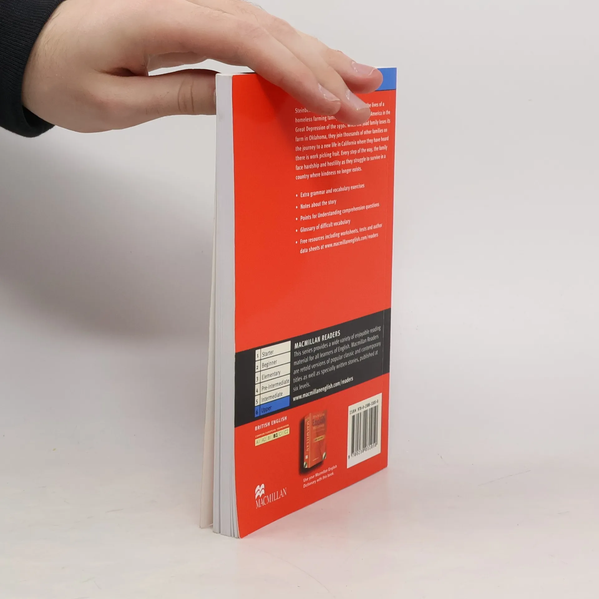 Reading Level: Upper IntermediateSteinbecks most powerful novel describes the lives of a homeless farming family as they travel across America in the Great Depression of the 1930s. When the Joad family loses its farm in Oklahoma, they join thousands of other families on the journey to a new life in California where they have heard there is work picking fruit. Every step of the way, the family face hardship and hostility as they struggle to survive in a country where kindness no longer exists.