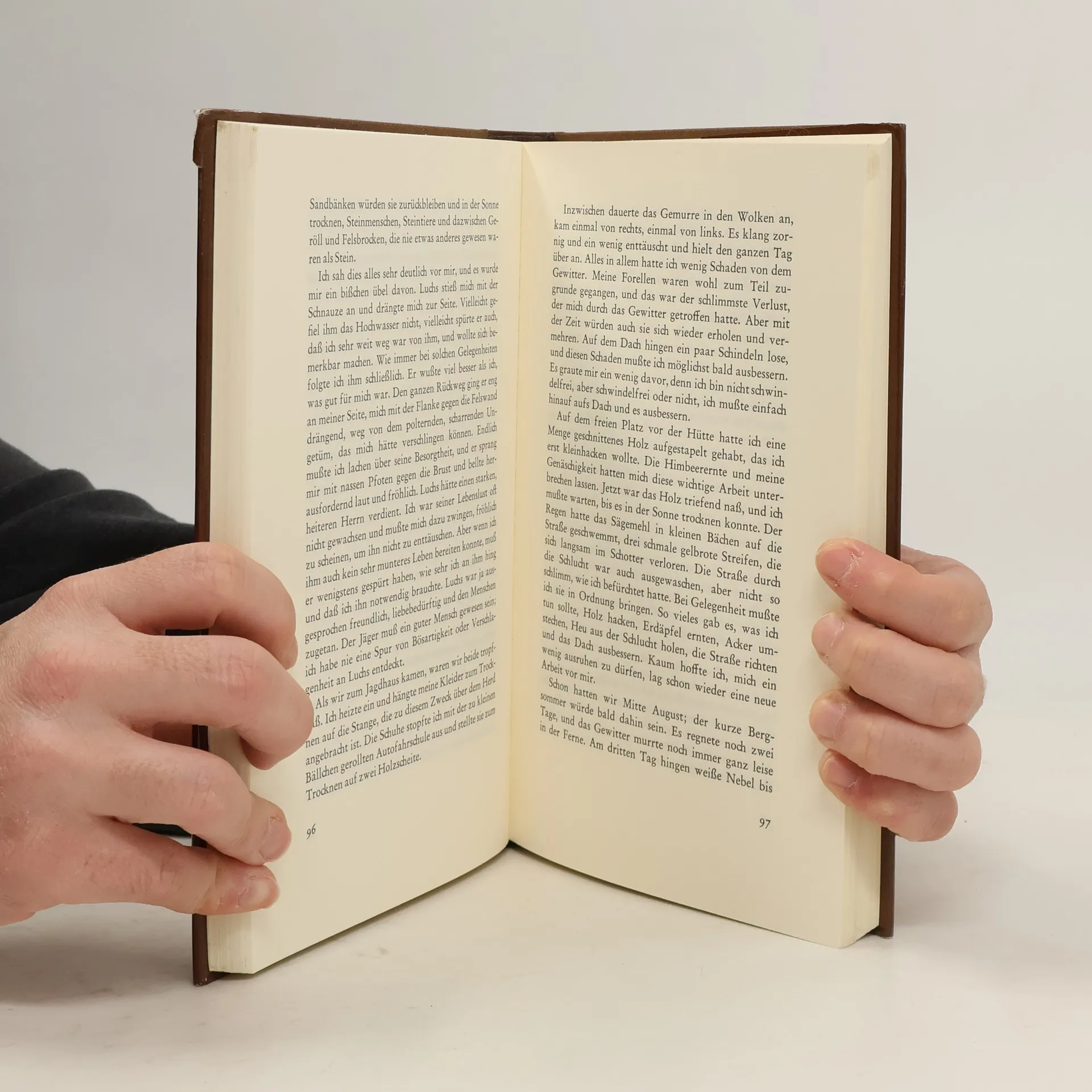 'Verdutzt streckte ich die Hand aus und berührte etwas Glattes und Kühles: einen glatten, kühlen Widerstand an einer Stelle, an der doch gar nichts sein konnte als Luft. Zögernd versuchte ich es noch einmal, und wieder ruhte meine Hand wie auf der Scheibe eines Fensters. Dann hörte ich lautes Pochen und sah um mich, ehe ich begriff, daß es mein eigener Herzschlag war, der mir in den Ohren dröhnte. Mein Herz hatte sich schon gefürchtet, ehe ich es wußte.'