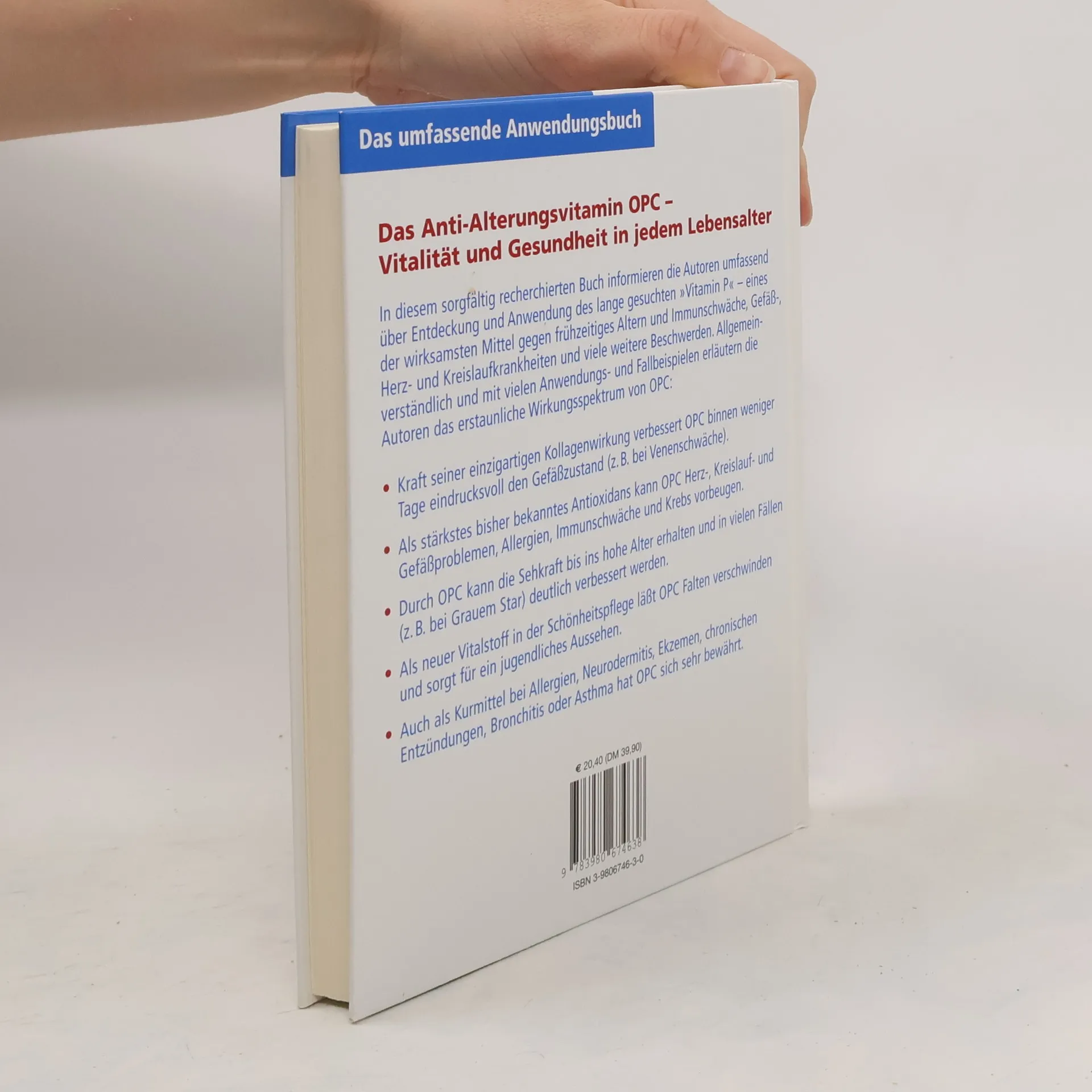 Das Standardwerk zur Entdeckung und Anwendung des lange gesuchten „Vitamin P“ - in erweiterter und aktualisierter 9. Auflage. Mit zahlreichen Anwendungs- und Fallbeispielen erläutern die Autoren das erstaunliche Wirkungsspektrum von OPC.: Kraft seiner einzigartigen Kollagenwirkung verbessert OPC binnen kurzem eindrucksvoll den Gefäßzustand (z. B. bei Venenschwäche). Als stärkstes bisher bekanntes Antioxidans kann OPC Herz-, Kreislauf- und Gefäßproblemen, Allergien, Immunschwäche und Krebs vorbeugen. Durch OPC kann die Sehkraft bis ins hohe Alter erhalten und in vielen Fällen (z. B. bei Grauem Star) deutlich verbessert werden. Als neuer Vitalstoff in der Schönheitspflege lässt OPC Falten verschwinden und sorgt für ein jugendliches Aussehen.