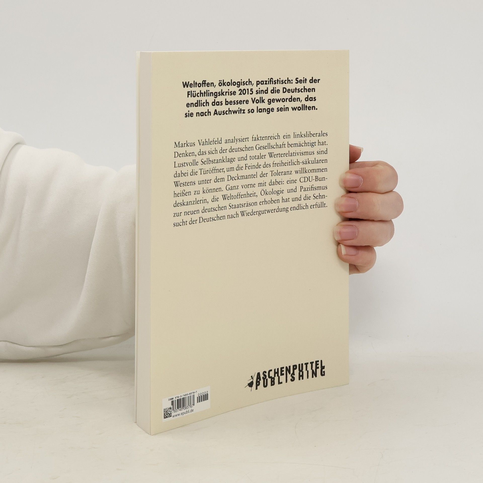 Weltoffen, ökologisch, pazifistisch: Seit der Flüchtlingskrise 2015 sind die Deutschen endlich das bessere Volk geworden, das sie nach Auschwitz so lange sein wollten. Markus Vahlefeld analysiert faktenreich ein linksliberales Denken, das sich der deutschen Gesellschaft bemächtigt hat. Lustvolle Selbstanklage und totaler Werterelativismus sind dabei die Türöffner, um die Feinde des freiheitlich-säkularen Westens unter dem Deckmantel der Toleranz willkommen heißen zu können. Ganz vorne mit dabei: eine CDU-Bundeskanzlerin, die Weltoffenheit, Ökologie und Pazifismus zur neuen deutschen Staatsräson erhoben hat und die Sehnsucht der Deutschen nach Wiedergutwerdung endlich erfüllt.
