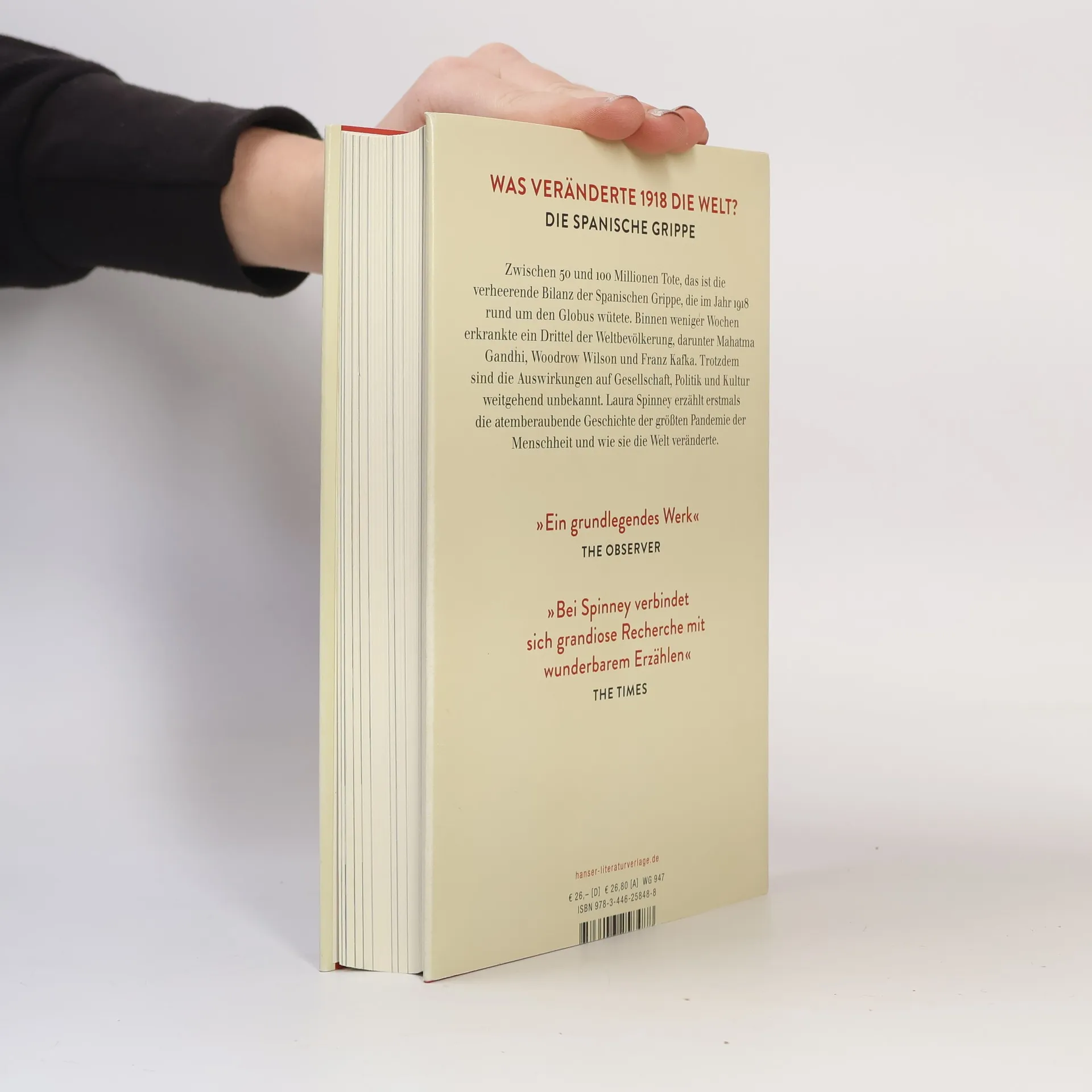 Gleichen sich die Corona-Pandemie und das Schicksalsjahr 1918? Laura Spinney in ihrem Bestseller über die Spanische Grippe als weltumspannendes gesellschaftliches Phänomen Der Erste Weltkrieg geht zu Ende, und eine weitere Katastrophe fordert viele Millionen Tote: die Spanische Grippe. Binnen weniger Wochen erkrankt ein Drittel der Weltbevölkerung. Trotzdem sind die Auswirkungen auf Gesellschaft, Politik und Kultur weitgehend unbekannt. Ob in Europa, Asien oder Afrika, an vielen Orten brachte die Grippe die Machtverhältnisse ins Wanken, womöglich beeinflusste sie die Verhandlung des Versailler Vertrags und verursachte Modernisierungsbewegungen. Anhand von Schicksalen auf der ganzen Welt öffnet Laura Spinney das Panorama dieser Epoche. Sie füllt eine klaffende Lücke in der Geschichtsschreibung und erlaubt einen völlig neuen Blick auf das Schicksalsjahr 1918.