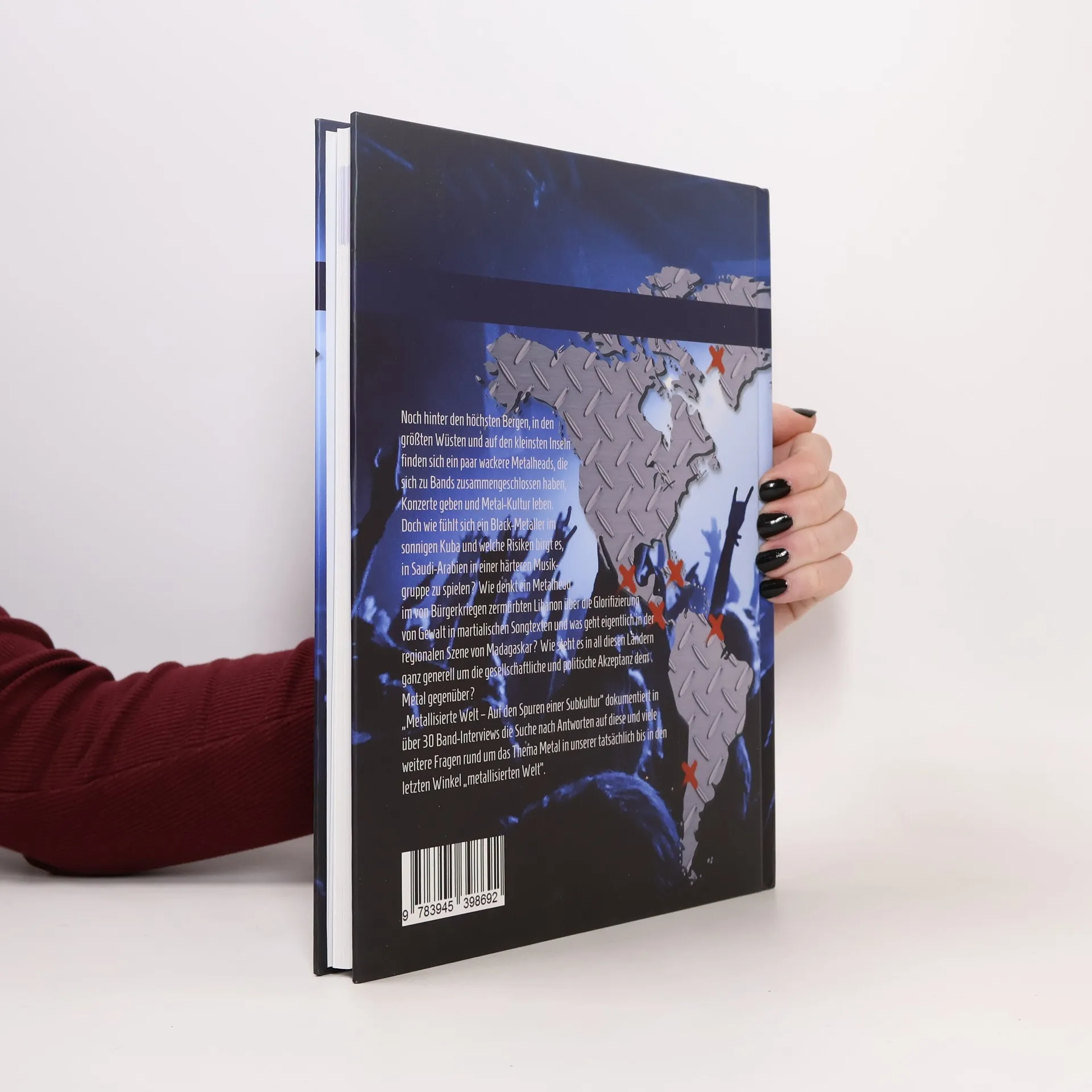 Noch hinter den höchsten Bergen, in den größten Wüsten und auf den kleinsten Inseln finden sich ein paar wackere Metalheads, die sich zu Bands zusammengeschlossen haben, Konzerte geben und Metal-Kultur leben. Doch wie fühlt sich ein Black-Metaller im sonnigen Kuba und welche Risiken birgt es, in Saudi- Arabien in einer härteren Musikgruppe zu spielen? Wie denkt ein Metalhead im von Bürgerkriegen zermürbten Libanon über die Glorifizierung von Gewalt in martialischen Songtexten und was geht eigentlich in der regionalen Szene von Madagaskar? Wie steht es in all diesen Ländern ganz generell um die gesellschaftliche und politische Akzeptanz dem Metal gegenüber? Metallisierte Welt – Auf den Spuren einer Subkultur dokumentiert in über 30 Band-Interviews die Suche nach Antworten auf diese und viele weitere Fragen rund um das Thema Metal in unserer tatsächlich bis in den letzten Winkel „metallisierten Welt“.