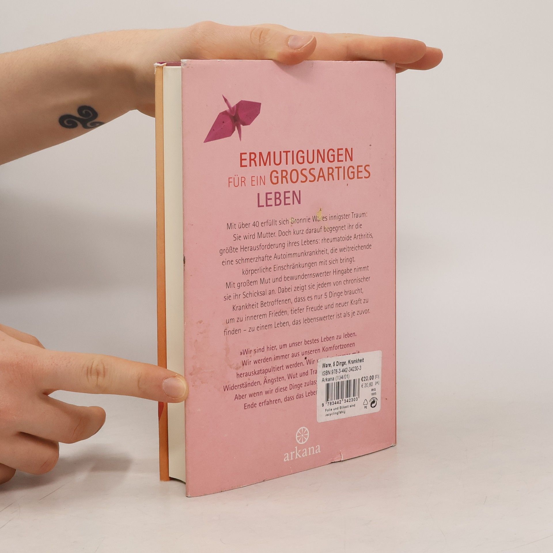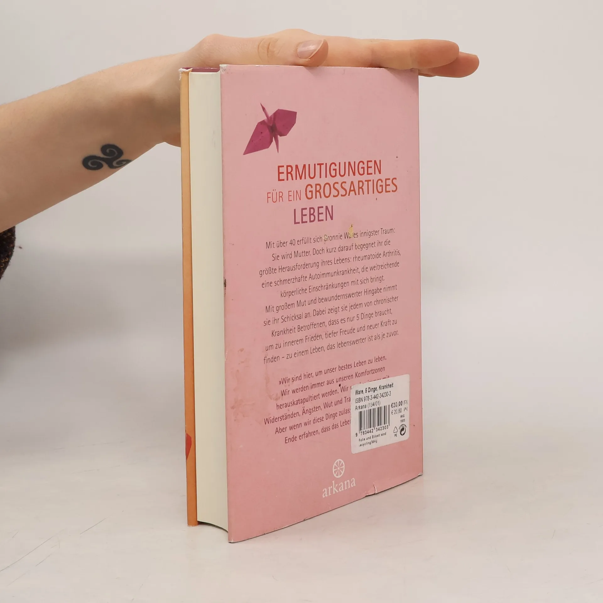 Heilung durch Hingabe. Bronnie Ware war eine unabhängige Frau mit vielfältigen Leidenschaften. »5 Dinge, die Sterbende am meisten bereuen« machte sie zur Bestsellerautorin. Außerdem erfüllte sich mit über 40 ihr größter Traum: Sie wurde Mutter. Doch dann begegnete ihr die größte Herausforderung ihres Lebens: Rheumatoide Arthritis – eine sehr schmerzhafte Autoimmunkrankheit, die weitreichende körperliche Einschränkungen mit sich bringt. Mit großem Mut und bewundernswerter Hingabe nimmt sie ihr Schicksal an. Und sie zeigt jedem von chronischer Krankheit Betroffenen, wie das Hier und Jetzt zum Lehrmeister werden kann. Zahlreiche Belohnungen warten: wachsende Selbstliebe und Vertrauen ins Leben, Prozesse der Vergebung, der Heilung und des inneren Wachstums. Am Ende ist das Leben lebenswerter als je zuvor.