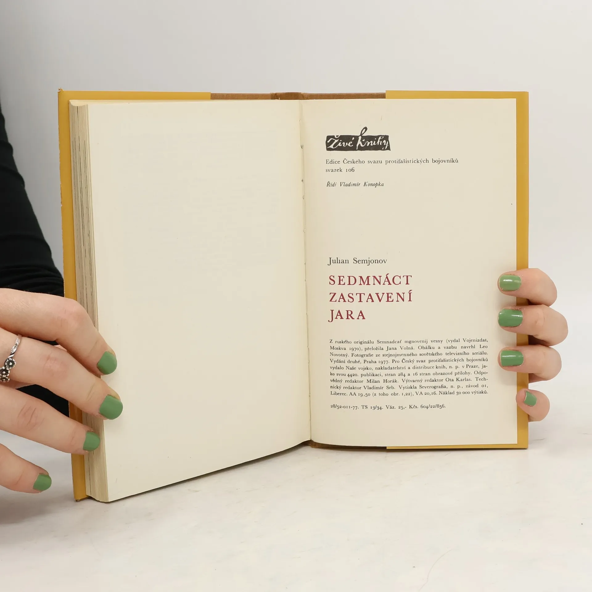Max Otto von Stierlitz je hlavní hrdina ruské románové série Juliana Semjonova a televizního seriálu Sedmnáct zastavení jara, natočeného roku 1973 s Vjačeslavem Tichonovem v hlavní roli. Standartenführer SS Otto von Stierlitz je ve skutečnosti plukovník Maxim Isajev, tajný agent KGB. Román se odehrává v posledních měsících druhé světové války. 284 stran a 16 stran obrazové přílohy, fotografie ze stejnojmenného televizního seriálu. Pro Český svaz protifašistických bojovníků vydalo Naše vojsko v edici Živé knihy, svazek 106. Vydání druhé.
