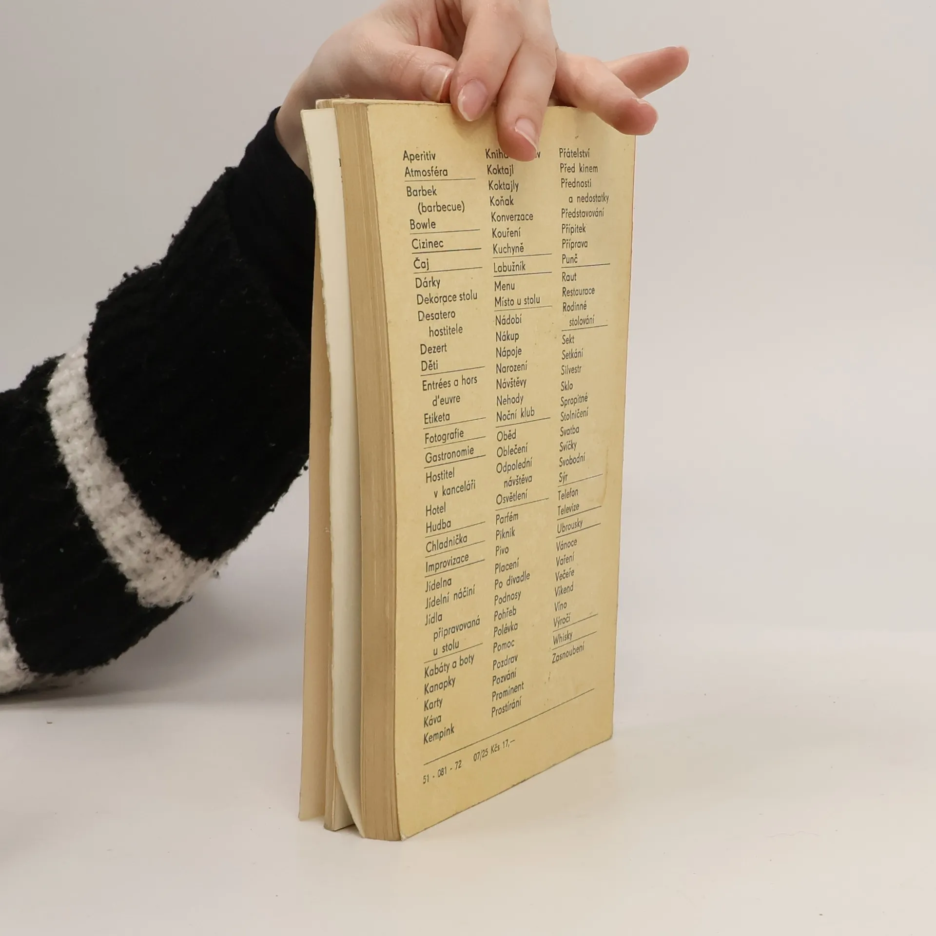 Kniha v několika heslech radí, jak se vypořádat s nejrůznějšími situacemi, které mohou čtenáře v roli hostitele potkat. Mnohé kapitoly jsou doplněny i recepty, jak na pokrmy, tak nápoje. Mnoho pravidel je platných i dnes, ale některé rady a doporučení nejspíše vyloudí na tváři úsměv.