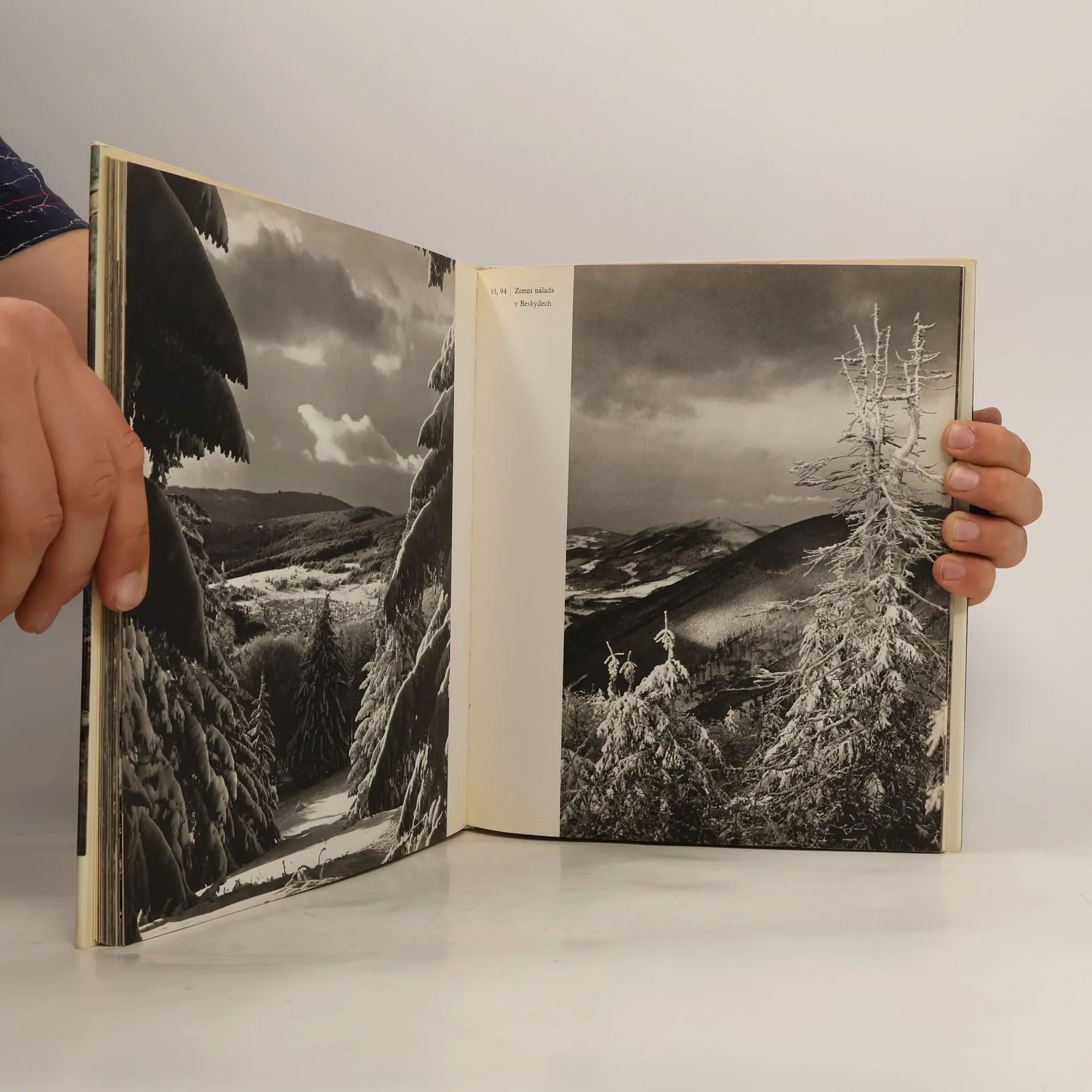 Černobílé fotografie autora doplněné textem česky, německy, anglicky, francouzsky.