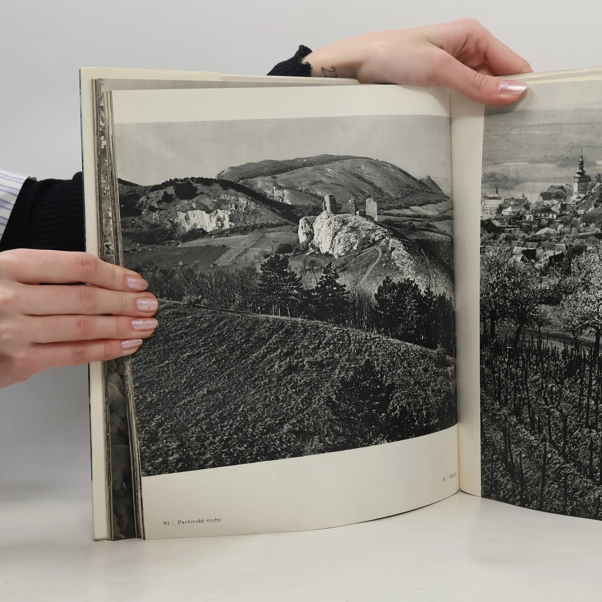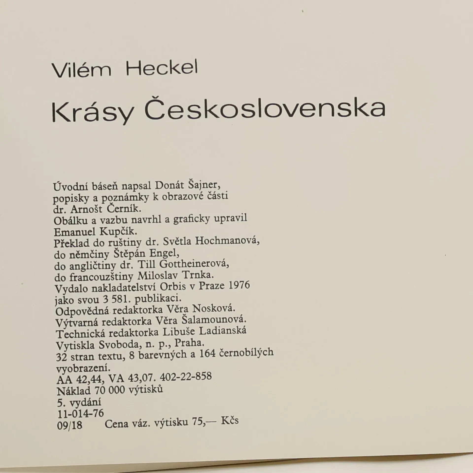 Černobílé fotografie autora doplněné textem česky, německy, anglicky, francouzsky.