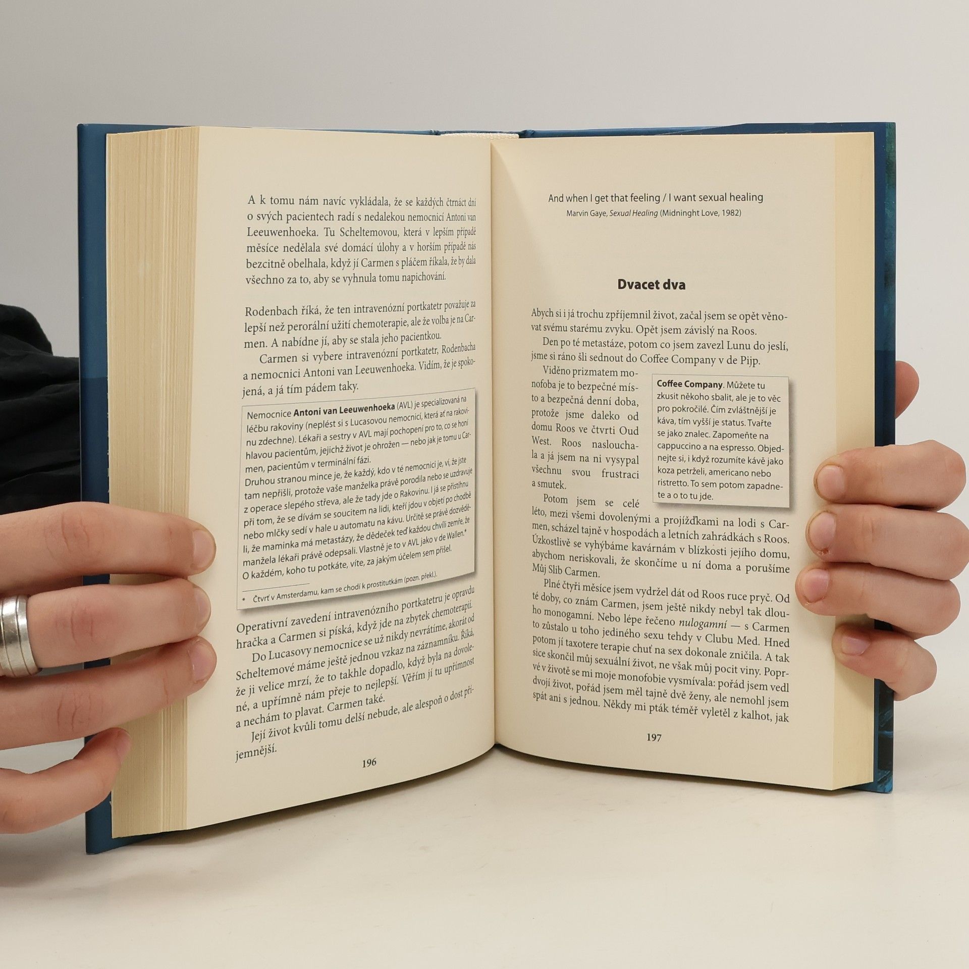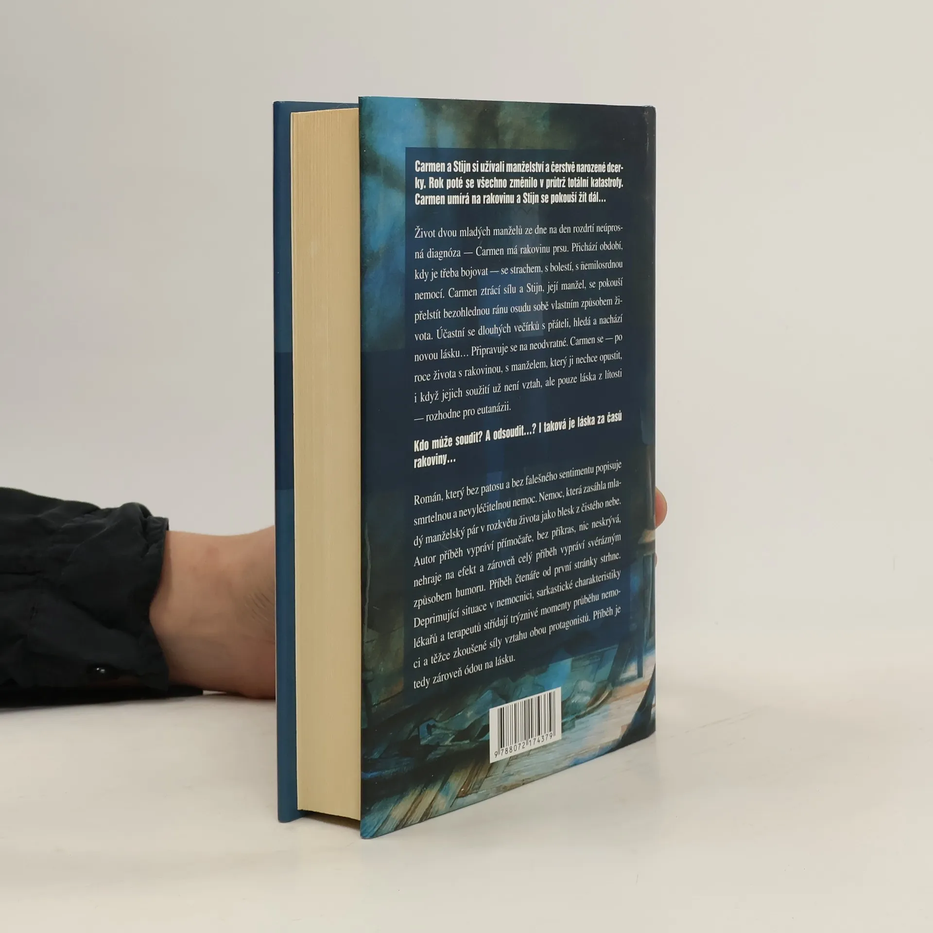 Stijn a Carmen jsou moderní, zdraví a bohatí manželé, mají roční holčičku a oba vlastní prosperující firmu. Užívají si plnými doušky života v Amsterodamu, dokud u Carmen není diagnostikována rakovina. Ze dne na den se jejich život změní z jednoho nekončícího večírku v cestu po doktorech a nemocnicích. Zatímco Carmen prochází chemoterapiemi a ozařováním, hédonista Stijn se vrhá do amsterodamského nočního života a do náruče žen. Román popisuje bez patosu a falešného sentimentu smrtelnou a nevyléčitelnou nemoc, která zasáhla mladý manželský pár v rozkvětu života jako blesk z čistého nebe. Autor vypráví svůj příběh přímočaře, bez příkras, nic neskrývá. Přitom však tyto tragické okamžiky líčí se svérázným černým humorem. Deprimující situace v nemocnici střídají trýznivé momenty průběhu nemoci a těžce zkoušené síly vztahu obou mladých lidí. Je to tedy zároveň óda na lásku. ... celý text