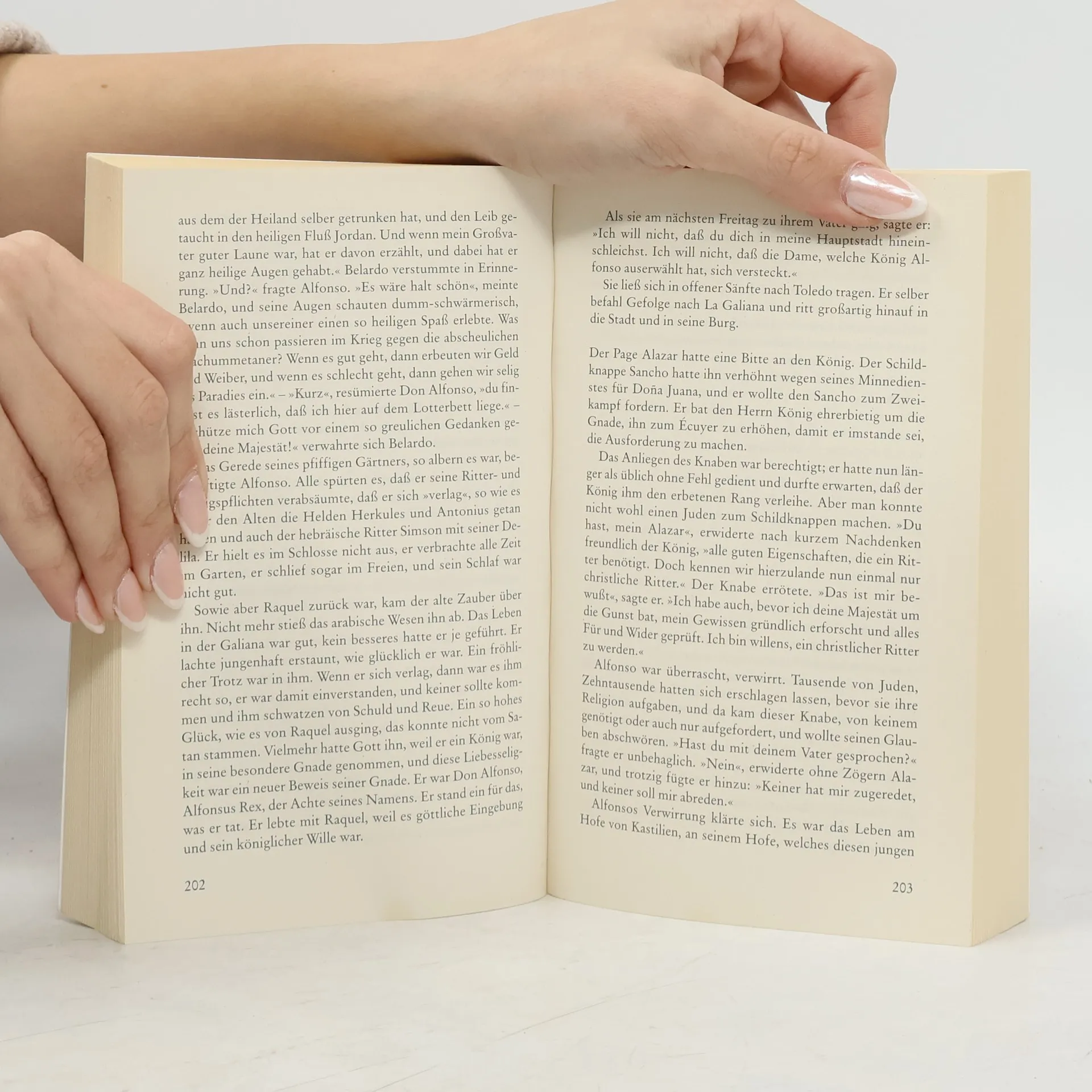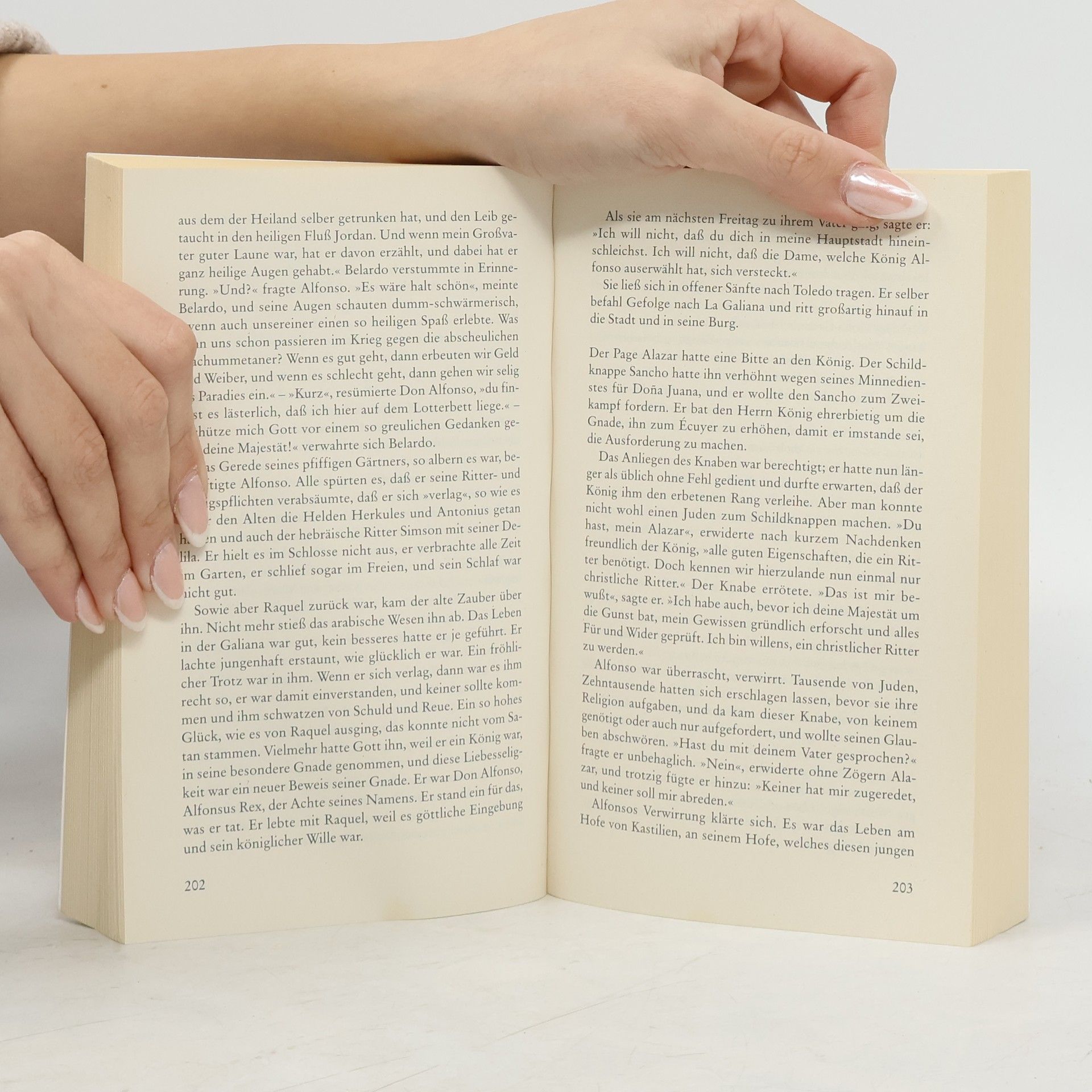 Eine tragische Liebesgeschichte La Fermosa, die Schöne, wird im mittelalterlichen Spanien Raquel, die Tochter des angesehenen Juden Jehuda Ibn Esra, genannt. In König Alfonso VIII. von Kastilien erwacht bald eine tiefe Leidenschaft für die gebildete, schöne junge Frau, und was für Raquel als politisches Opfer im Interesse der Vernunft und des Friedens begann, wächst auch bei ihr zu einer stürmischen Liebe für den mutigen König. „Liebesszenen von glühender Leidenschaft und der heißen Sinnlichkeit südlicher Temperamente.“ Marcel Reich-Ranicki