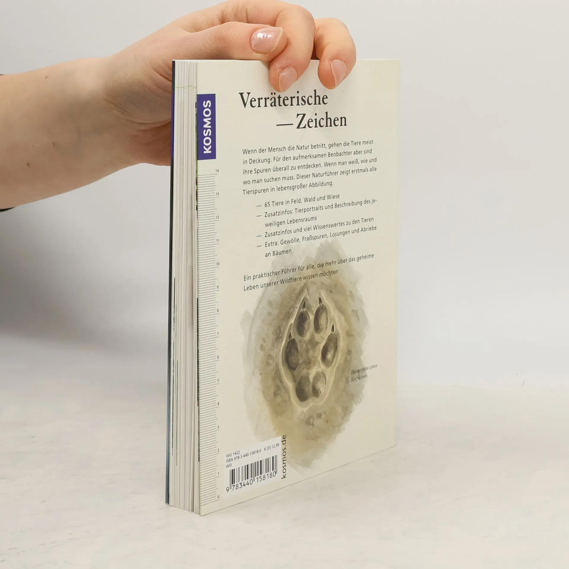 Wenn der Mensch die Natur betritt, gehen die Tiere meist in Deckung – aber ihre Spuren sind überall zu finden. Frank Heckers Life-Size-Naturführer macht das Erkennen und Zuordnen der verschiedenen Arten jetzt noch einfacher. Jede Tierspur wird in ihrer tatsächlichen Größe abgebildet. Daneben sieht man jeweils den Spurenverlauf und andere Lebenszeichen wie Fraßspuren, Losungen oder Abriebe an Bäumen. Fotos zeigen jedes Tier im Porträt und in seinem Lebensraum. Ein praktischer Naturführer für alle, die mehr über das geheime Leben unserer Wildtiere wissen möchten.
