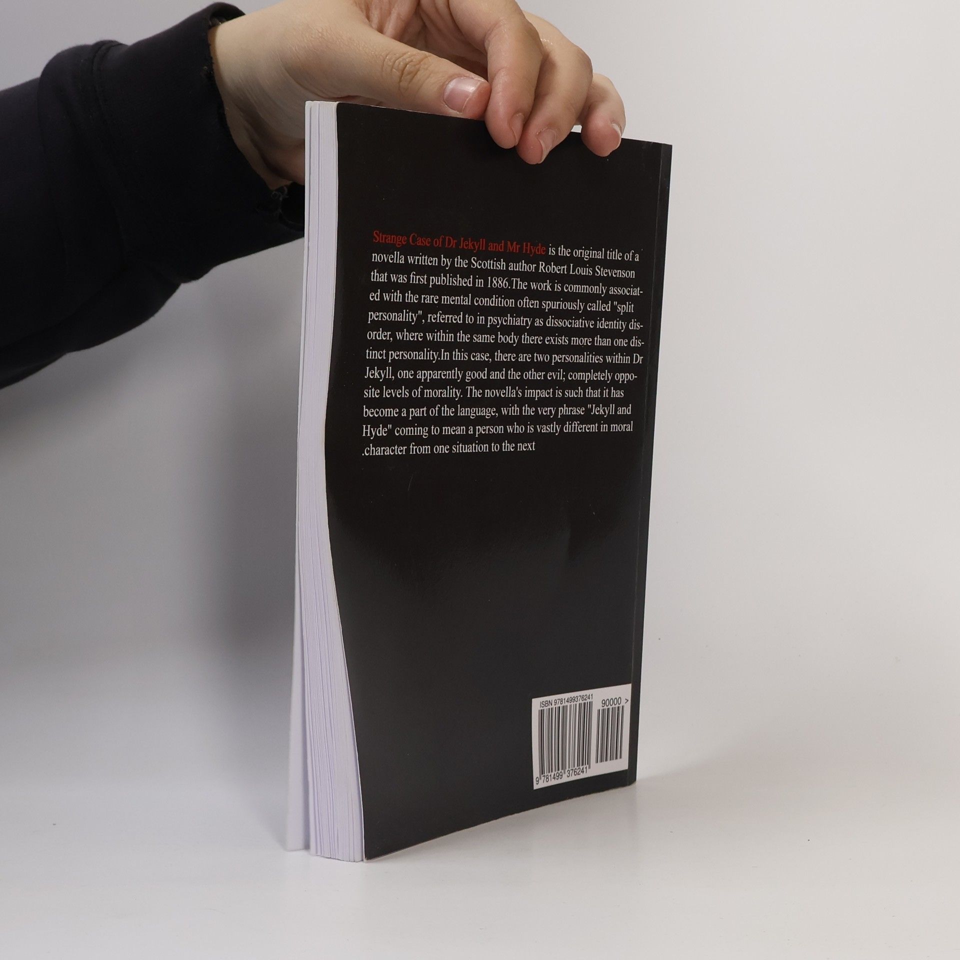 Strange Case of Dr Jekyll and Mr Hyde is the original title of a novella written by the Scottish author Robert Louis Stevenson that was first published in 1886.The work is commonly associated with the rare mental condition often spuriously called "split personality", referred to in psychiatry as dissociative identity disorder, where within the same body there exists more than one distinct personality.In this case, there are two personalities within Dr Jekyll, one apparently good and the other evil; completely opposite levels of morality. The novella's impact is such that it has become a part of the language, with the very phrase "Jekyll and Hyde" coming to mean a person who is vastly different in moral character from one situation to the next.