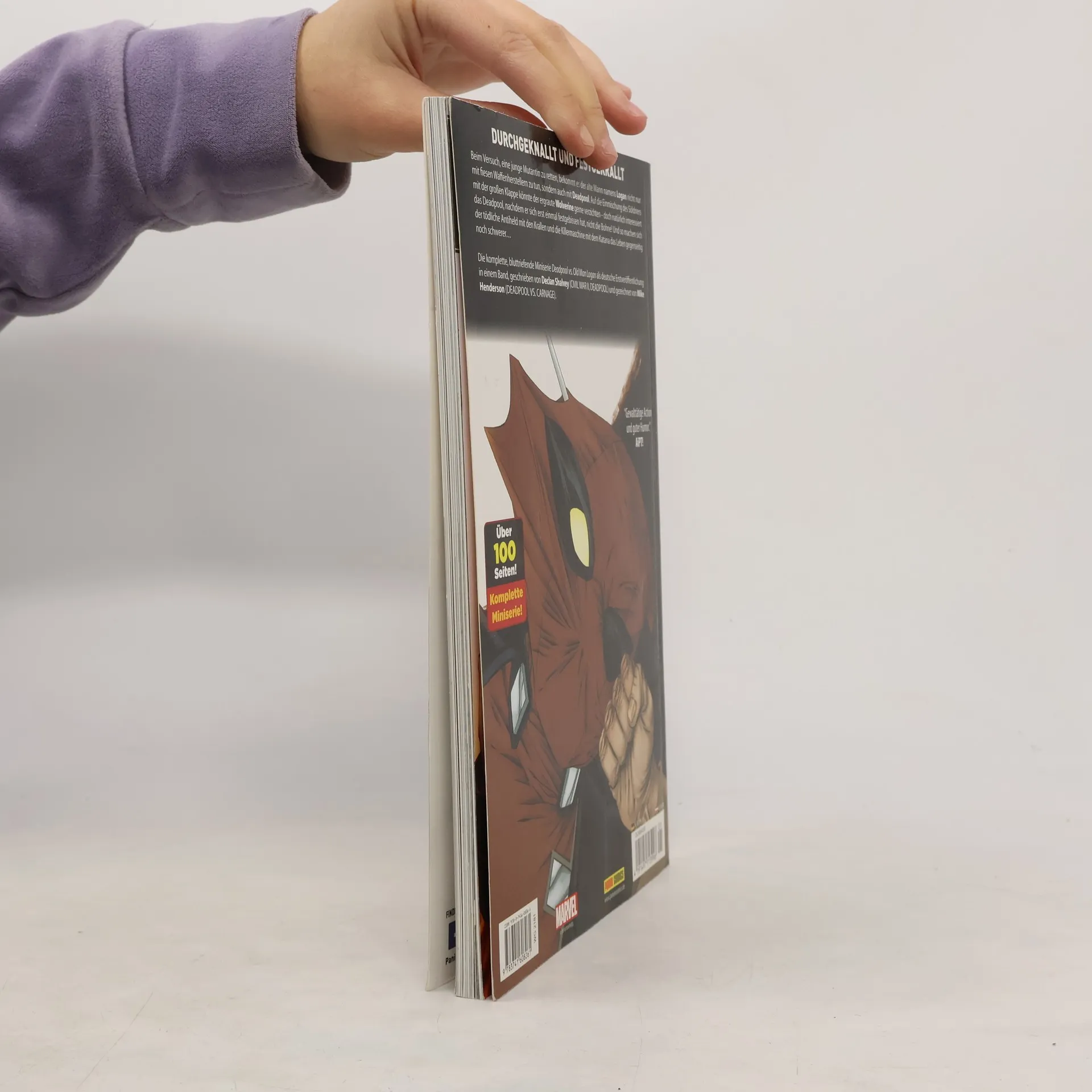 DURCHGEKNALLT UND FESTGEKRALLT Beim Versuch, eine junge Mutantin zu retten, bekommt es der alte Mann namens Logan nicht nur mit fiesen Waffenherstellern zu tun, sondern auch mit Deadpool. Auf die Einmischung des Söldners mit der großen Klappe könnte der ergraute Wolverine gerne verzichten - doch natürlich interessiert das Deadpool, nachdem er sich erst einmal festgebissen hat, nicht die Bohne! Und so machen sich der tödliche Antiheld mit den Krallen und die Killermaschine mit dem Katana das Leben gegenseitig noch schwerer... Die komplette, blutriefende Miniserie Deadpool vs. Old Man Logan als deutsche Erstveröffentlichung in einem Band, geschrieben von Declan Shalvey (CIVIL WAR II, DEADPOOL) und gezeichnet von Mike Henderson (DEADPOOL VS. CARNAGE).