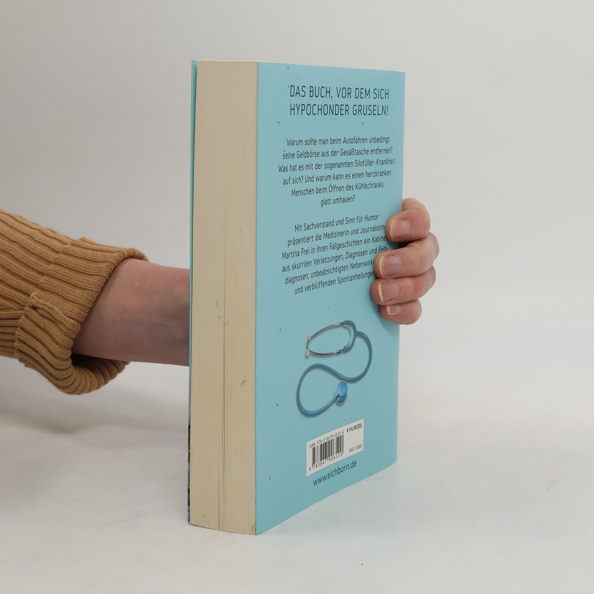 Warum kann es beim Autofahren durchaus Sinn machen, seine Geldbörse aus der Gesäßtasche zu entfernen? Was hat es mit der so genannten Silofüller-Krankheit auf sich? Und warum kann ein schöner Bodybuilder-Rücken die Bewegungsfähigkeit des Kopfes so einschränken, dass das Linksabbiegen im Auto zum Glücksspiel wird? Mit Sachverstand und feinem Humor präsentiert die Medizinerin und Journalstin Martina Frei in ihrem neuen Buch ein Kabinett aus skurrilen Verletzungen, Diagnosen und Fehldiagnosen, unbeabsichtigten Nebenwirkungen und verblüffenden Spontanheilungen.