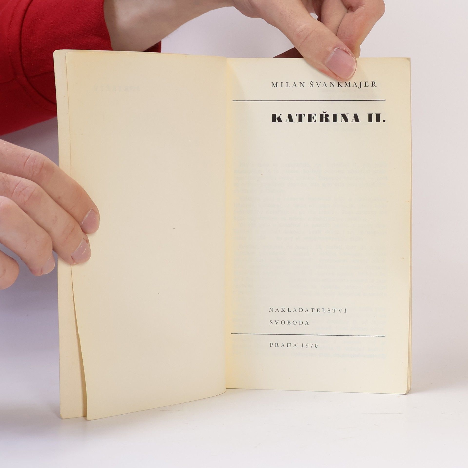 Kniha z edice Portréty.Životopis ruské carevny, jež se svým vlivem vepsala do historie evropského a asijského kontinentu druhé poloviny 18. století, vypovídá svěže a poučeně i o důležitých událostech tehdejší ruské a evropské politiky. Životní postup dcery pruského generála hodnotí autor střízlivě, s úsilím nevnímat jen jednu stránku dějinné skutečnosti. Ke studiu jsou připojeny ukázky z carevniných pamětí, vyhlášek (ukazy, instrukce), listů G.A. Potěmkinovi i jiné její písemnosti (mj. závěť) a výběr z ohlasů, které Kateřina vzbudila u různých autorů (u Puškina, Ključevského, Shawa a v anonymním nekrologu).