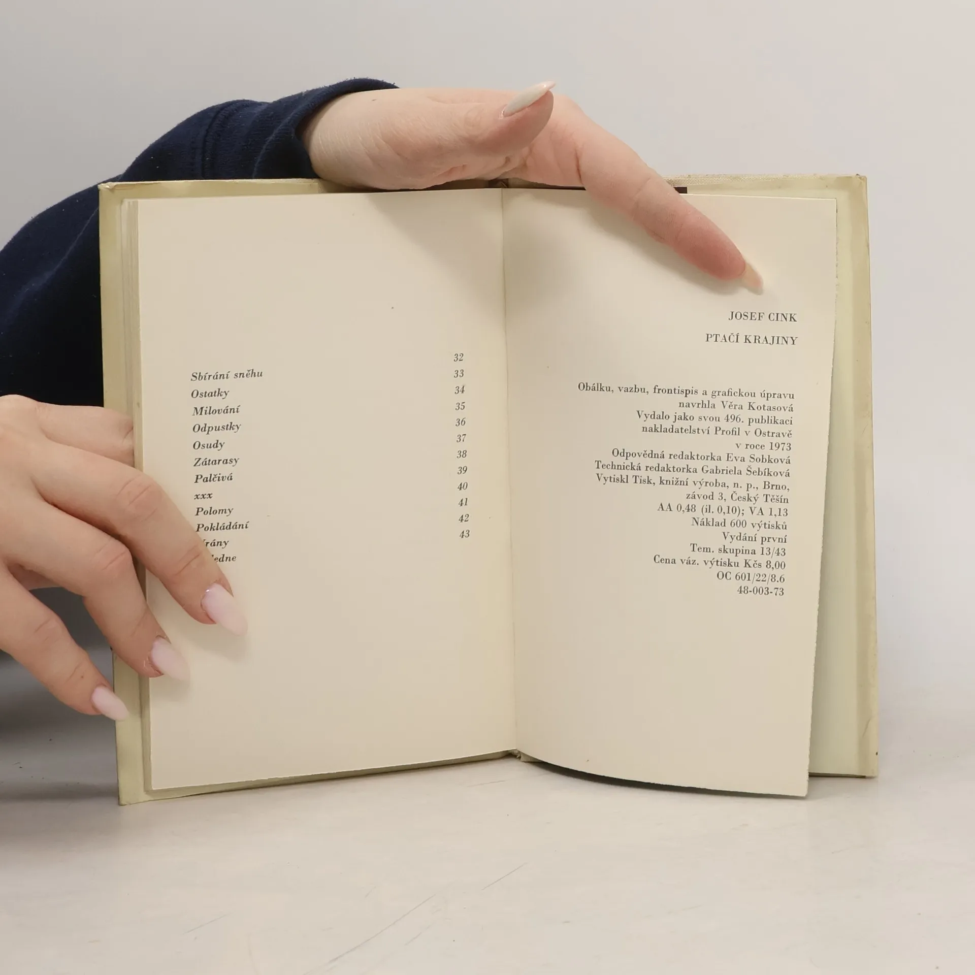 Básnická sbírka autora (nar. 1932), který publikuje od r. 1960 a je tvůrcem příležitostného tisku Aby už nikdy, věnovaného vietnamským vlastencům. Volné nerýmované verše úsporných až heslovitých konstrukcí promítají do přírodních obrazů a nálad kritiku lidských vztahů a úzkosti a naděje lidského nitra.